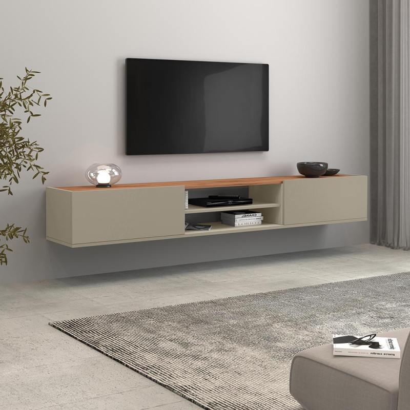 Véritable atout polyvalent, ce meuble tv moderne se distingue par sa capacité à s'adapter à vos envies de décoration. Il peut en effet être posé au sol, mais également suspendu au mur pour libérer de l'espace au sol et donner une impression de légèreté à votre pièce de vie. Avec ses dimensions compactes en hauteur (30 cm) et en profondeur (35 cm), il s'impose sans jamais envahir l'espace, laissant toute la place à votre écran et à votre style personnel. Cette flexibilité d'installation en fait un choix particulièrement adapté aux intérieurs modernes où chaque centimètre compte.