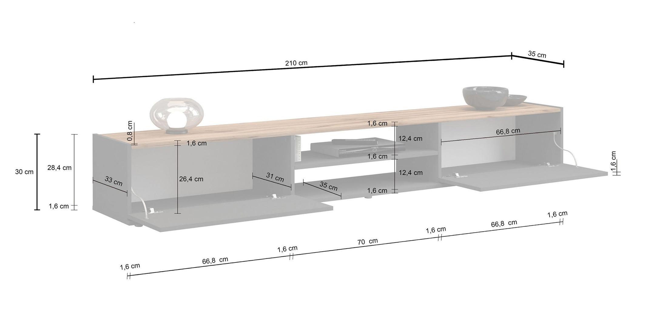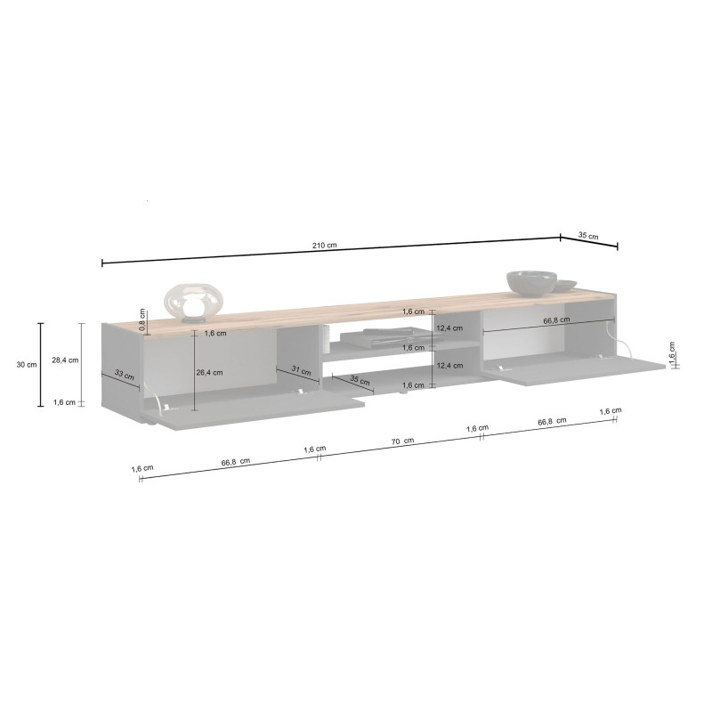 | Buffet/bahut moderne 200 cm taupe/chêne wotan Grana | | Longueur: 200 cm Hauteur: 70 cm Profondeur: 35 cm | En stock 48 à 72h | 465 € 00 | ||