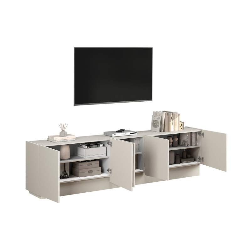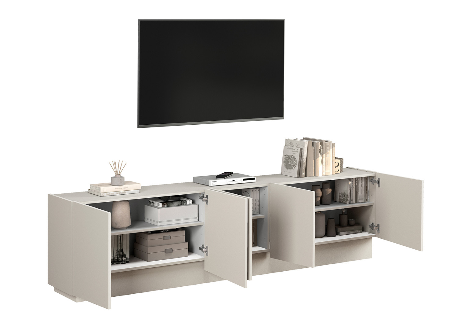 En tant que véritable meuble de salon pensé pour répondre aux exigences du quotidien, ce modèle Valencia offre des dimensions généreuses et parfaitement proportionnées : 225 cm de longueur, 60 cm de hauteur et 35 cm de profondeur. Il accueille aisément votre téléviseur tout en proposant de nombreux espaces de rangement grâce à ses 4 portes battantes. Que vous souhaitiez y ranger vos équipements multimédias, vos livres ou vos objets décoratifs, chaque centimètre est intelligemment exploité pour concilier esthétique et praticité au quotidien.