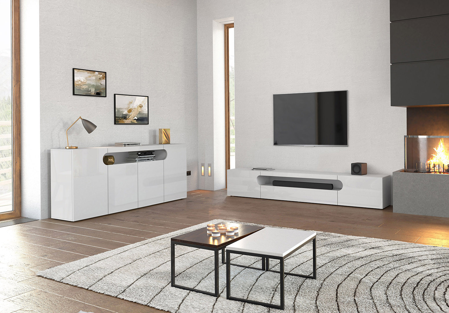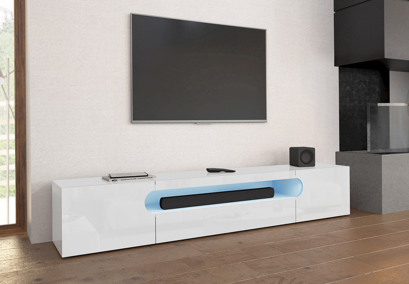 | Meuble TV moderne 4 portes blanc brillant Regina | | Longueur: 240 cm Hauteur: 61 cm Profondeur: 40 cm | En stock 48 à 72h | 459 € 99 |