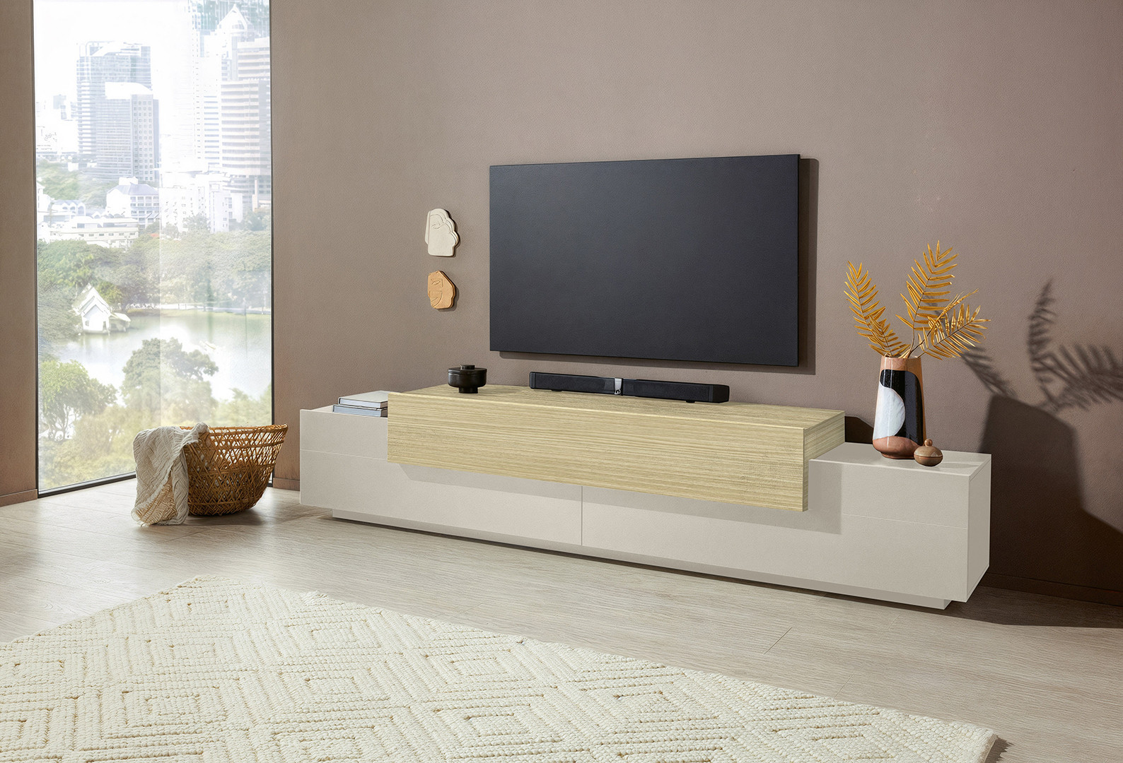 Meuble TV moderne 200 cm cachemire/chêne Corso | ![]() | Longueur: 200 cm Hauteur: 52 cm Profondeur: 45 cm | En stock 48 à 72h | 323 € 99 | ||
