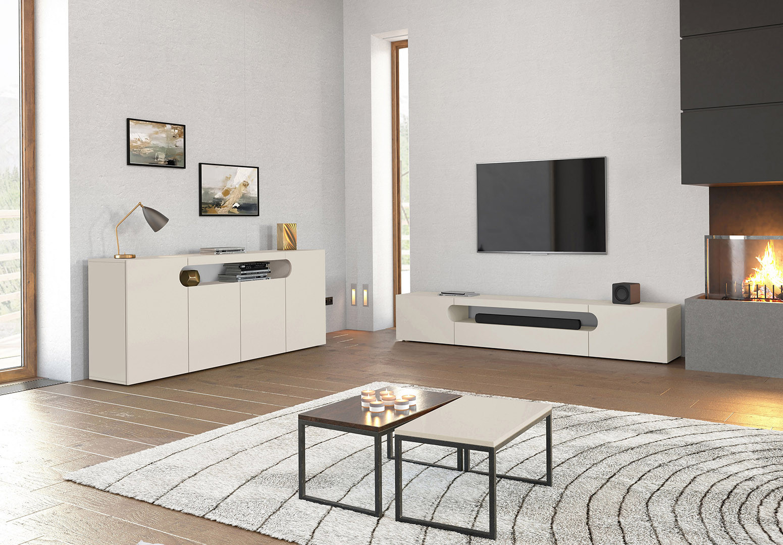 | Meuble TV moderne 4 portes coloris cachemire Regina | | Longueur: 240 cm Hauteur: 61 cm Profondeur: 40 cm | En stock 48 à 72h | 459 € 99 |