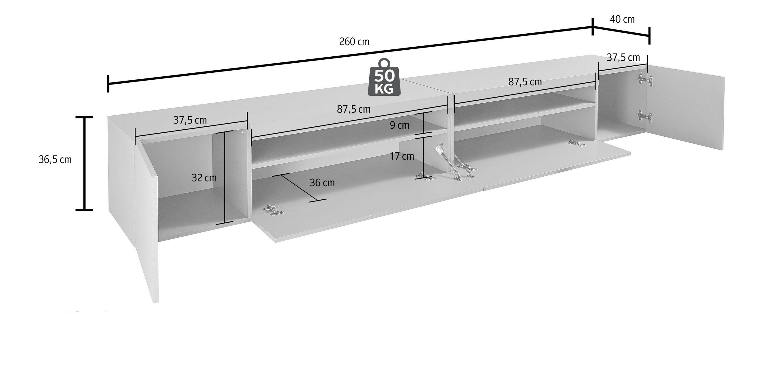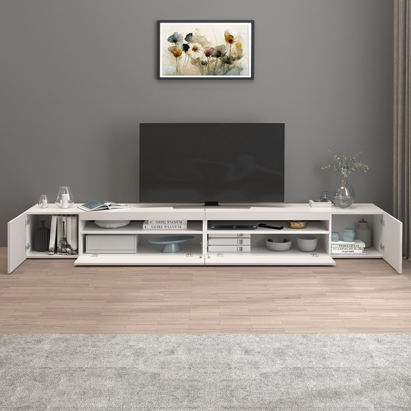 Apportez une touche de sophistication et de luminosité à votre pièce de vie grâce à ce meuble tv moderne signé Deladeco, conçu et fabriqué en Italie avec un soin particulier apporté à la qualité des matériaux. Avec ses 260 cm de longueur imposante, ce meuble tv s'impose comme la pièce maîtresse de votre espace et offre une capacité de rangement généreuse tout en conservant une silhouette élancée de seulement 36 cm de hauteur et 40 cm de profondeur. Sa finition blanc brillant apporte une dimension lumineuse et premium à l'ensemble, reflétant la lumière pour agrandir visuellement la pièce.