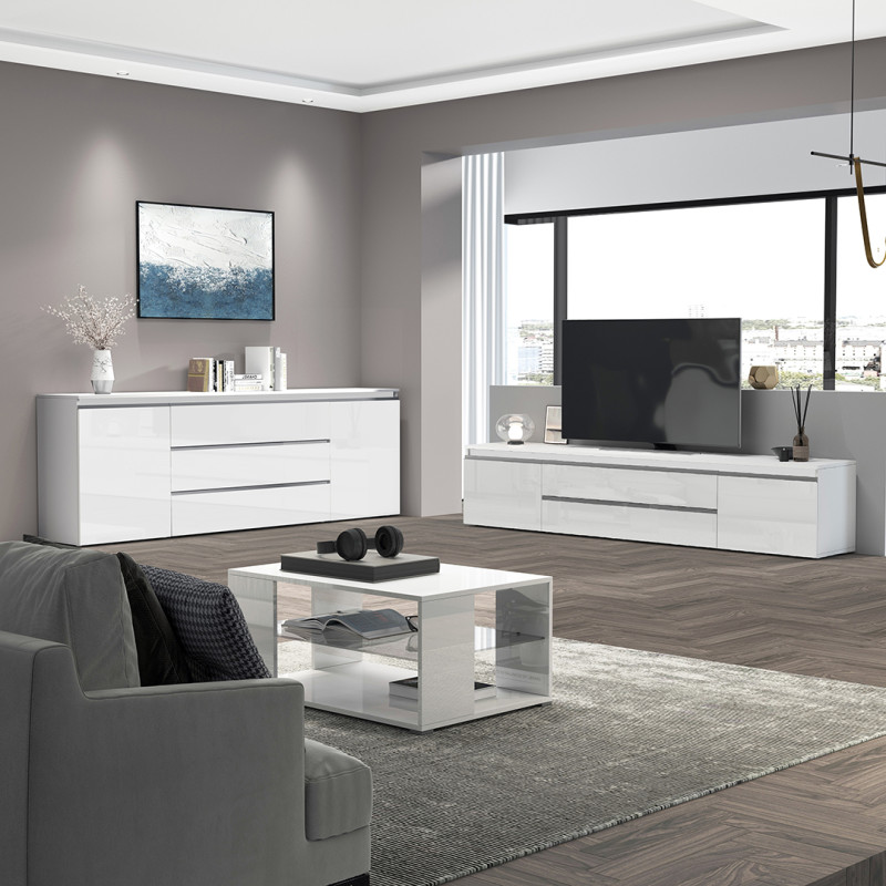 | Buffet/bahut moderne 200 cm blanc brillant Maeva | | Longueur: 200 cm Hauteur: 80 cm Profondeur: 40 cm | En stock 48 à 72h | 465 € 00 | ||