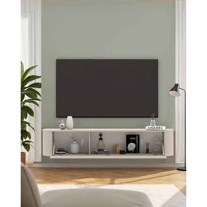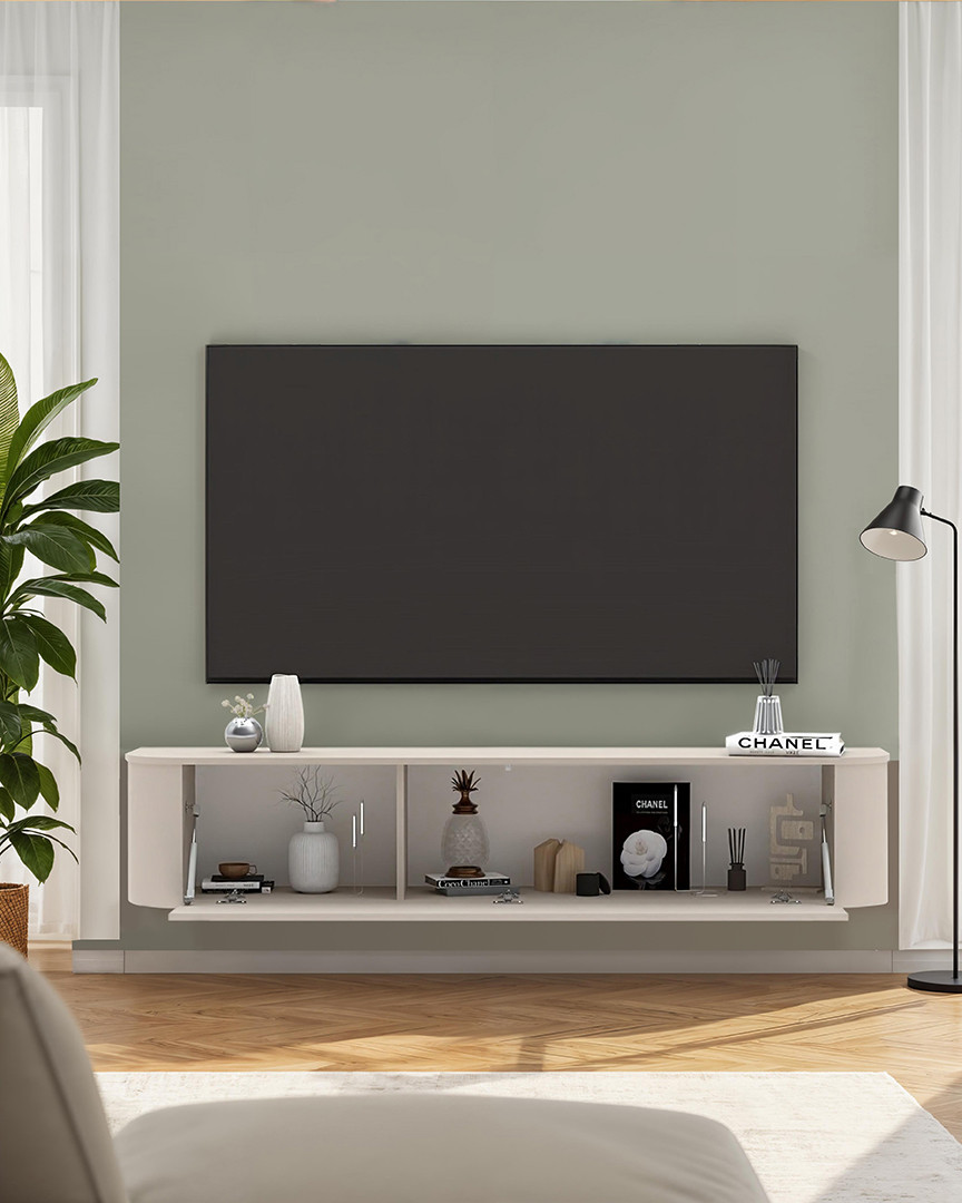 Le meuble tv suspendu Horizo se distingue également par sa praticité. Il dispose d’une porte battante dotée d’un système d’ouverture Push To Open, garantissant un usage fluide et silencieux. L’intérieur spacieux permet de ranger consoles, lecteurs ou accessoires TV en toute discrétion, pour un salon toujours bien ordonné. Grâce à sa finition mélaminée, le nettoyage se fait facilement à l’aide d’un chiffon doux et humide, ce qui prolonge sa durabilité sans effort. Ce meuble tv s’adresse à ceux qui recherchent un compromis parfait entre élégance, fonctionnalité et confort d’utilisation au quotidien.