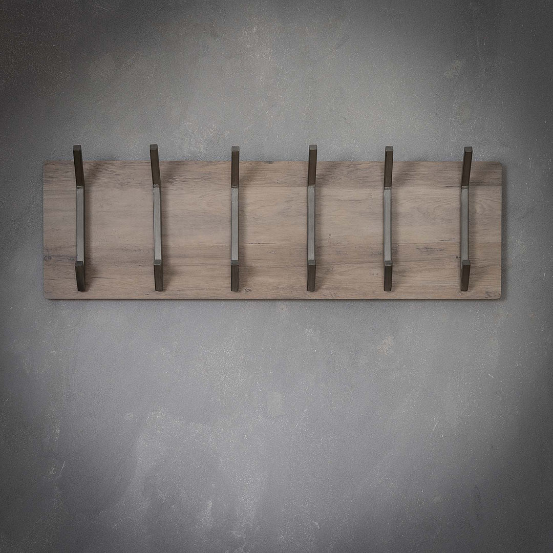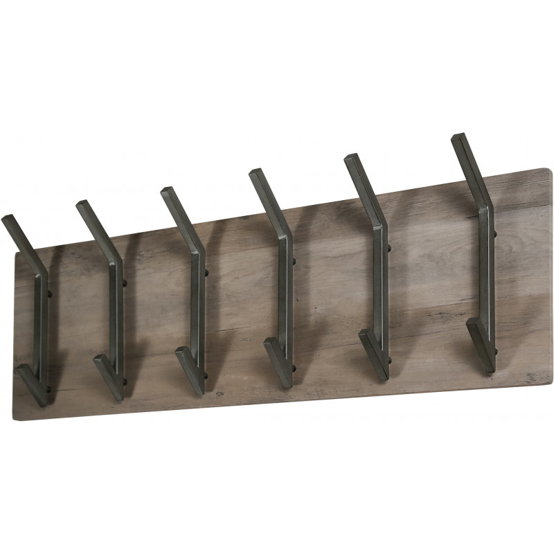 Portemanteau mural industriel 6 crochets en acacia massif naturel Soraya