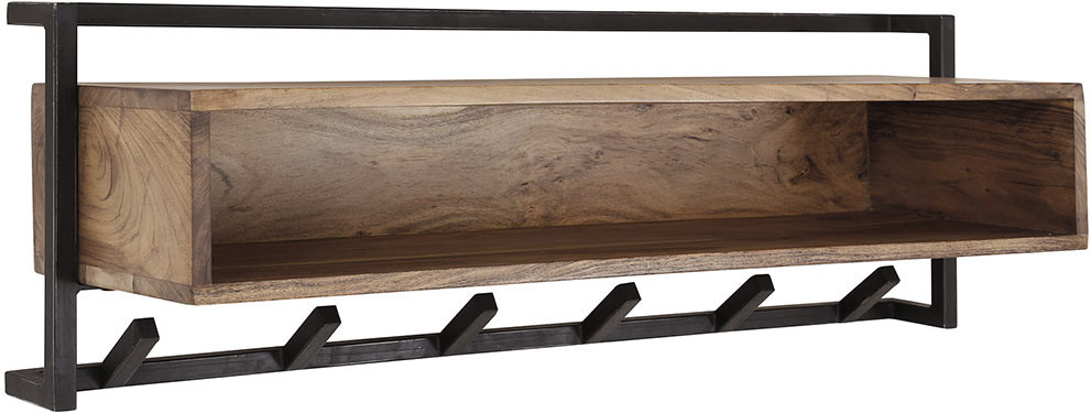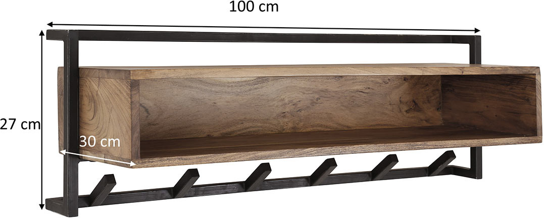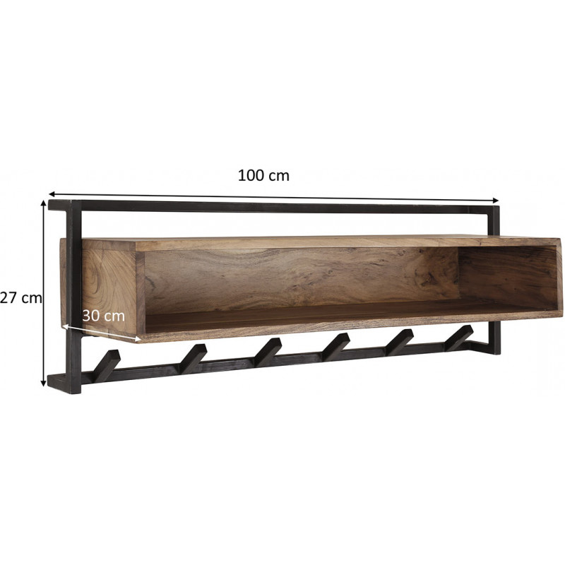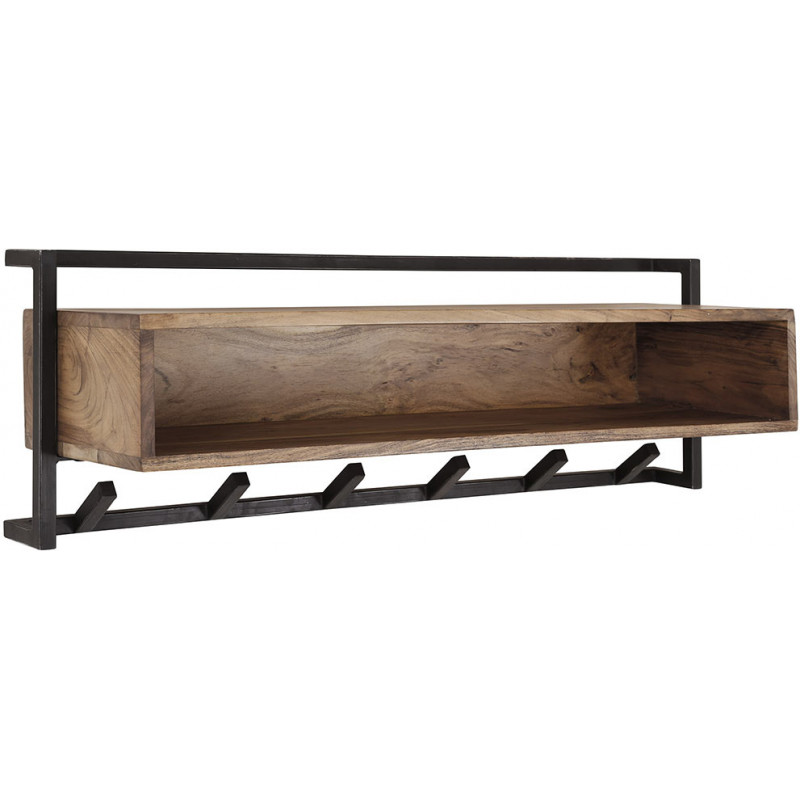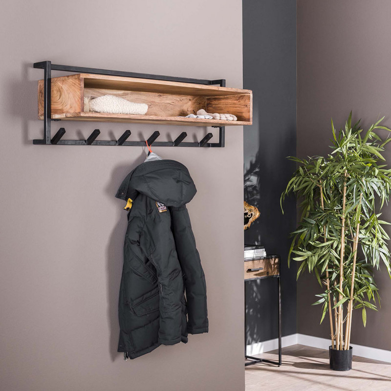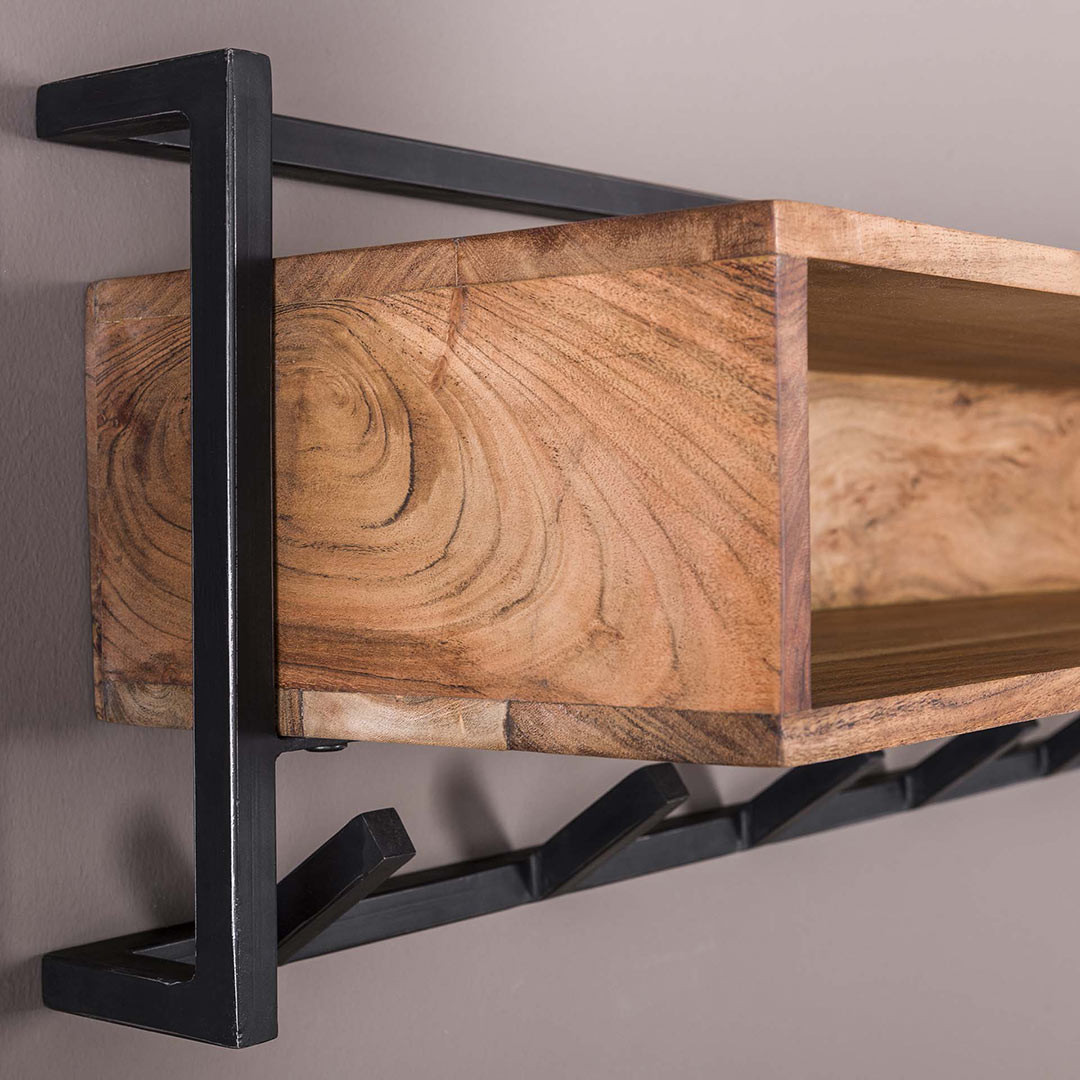 Portemanteau mural industriel 6 crochets en acacia massif naturel Soraya