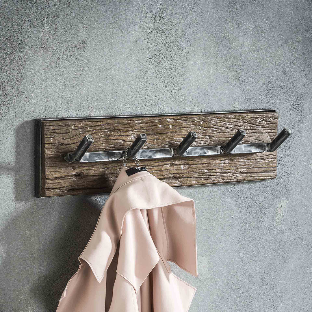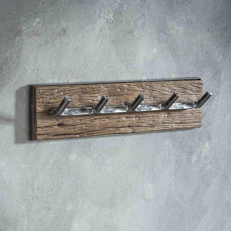 Portemanteau mural industriel 6 crochets en acacia massif naturel Soraya