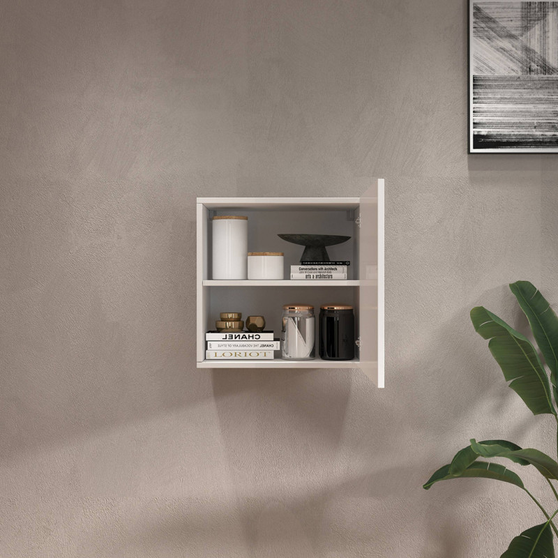 Sa porte battante unique, dotée d'une ouverture fluide et silencieuse, dissimule efficacement vos affaires tout en préservant l'harmonie visuelle de votre décoration intérieure. En tant que rangement mural fixé directement au mur, il optimise intelligemment l'espace disponible sans encombrer le sol, une solution idéale pour les pièces aux dimensions réduites. L'entretien ne pourrait être plus simple : un chiffon doux et légèrement humide suffit à maintenir toute la brillance de sa surface immaculée, année après année, sans effort particulier.