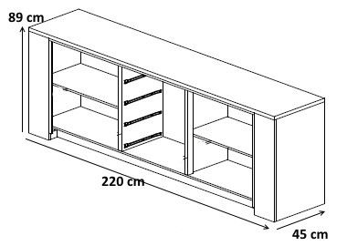 | Dimensions du buffet | L 220 x H 89 x P 45 cm |