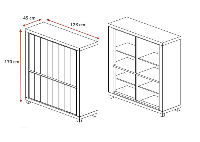 | Dimensions du vaisselier | L 128 x H 170 x P 45 cm |