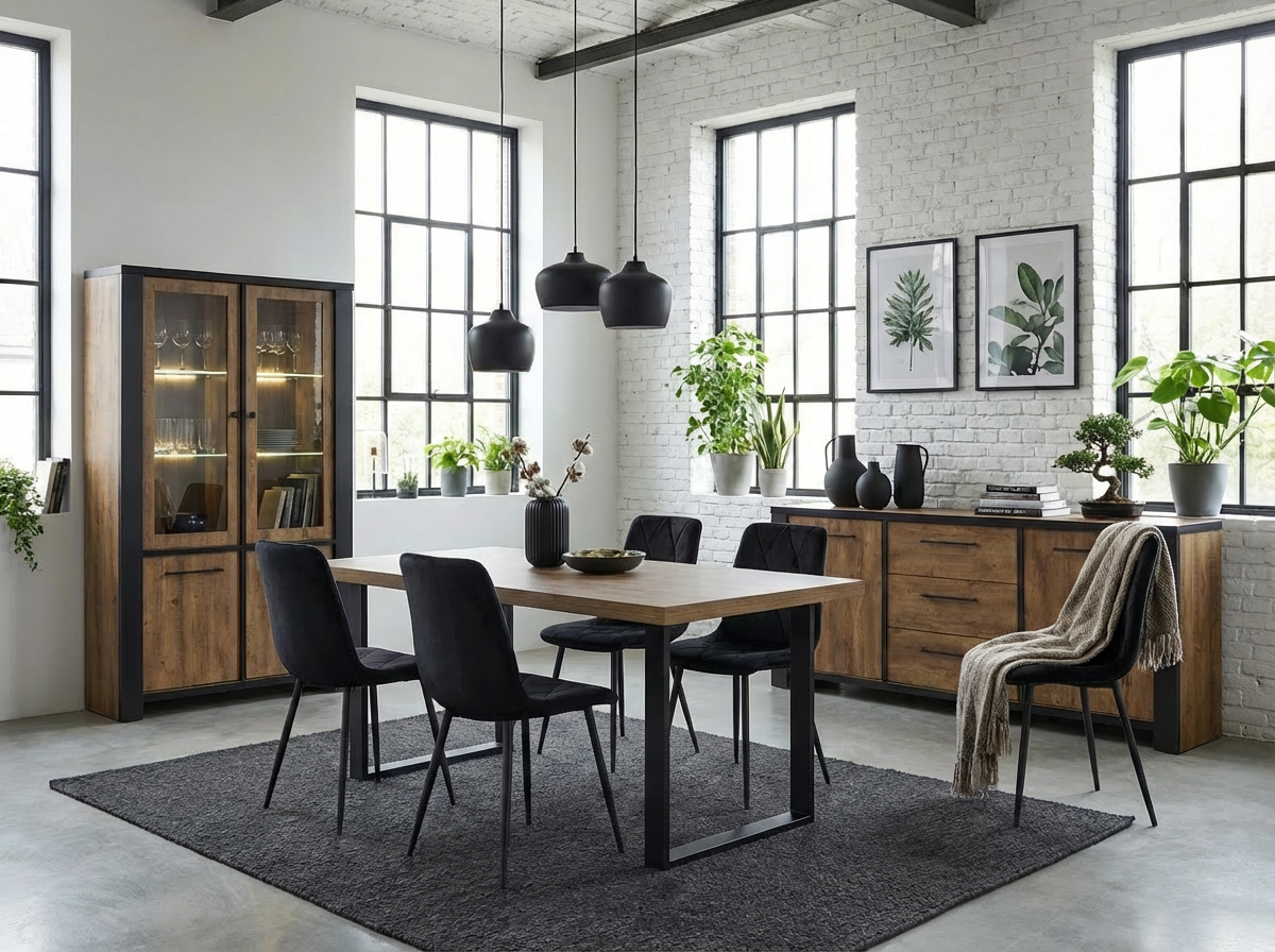 Le charme industriel de cette salle à manger complète s’adapte à merveille à tout type d’intérieur. Son décor chêne foncé apporte une touche de modernité qui séduit dès le premier coup d’œil. Si vous cherchez à transformer votre espace de vie avec une pièce à la fois belle et pratique, l’Arizona Rocco est l'option idéale !