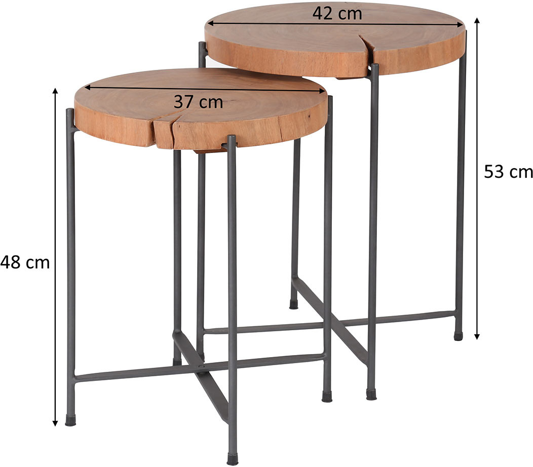 | Information complémentaire | Dimensions des tables : 37 x 48 cm et 42 x 53 cm (Ø x H) |
