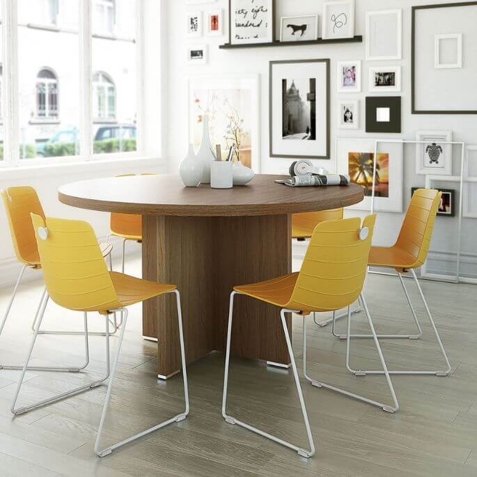 Table de réunion ronde coloris noyer piétement noir Kennedy