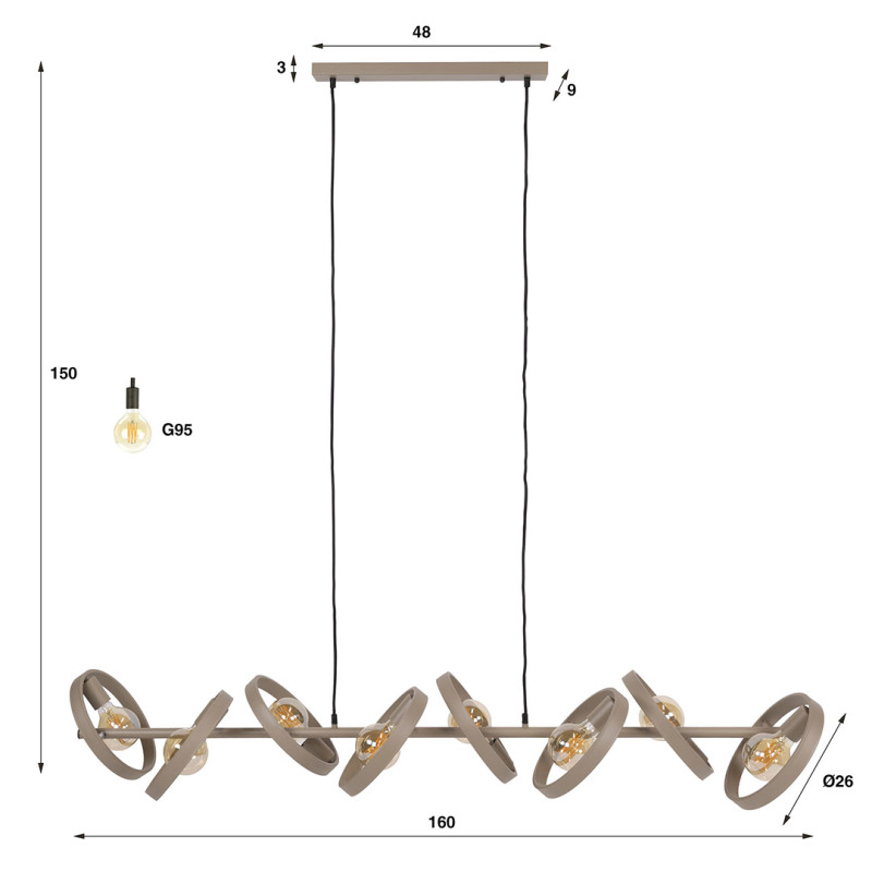| Longueur de la suspension | Source lumineuse Led filament bol Ø9.5 cm - interrupteur mural |