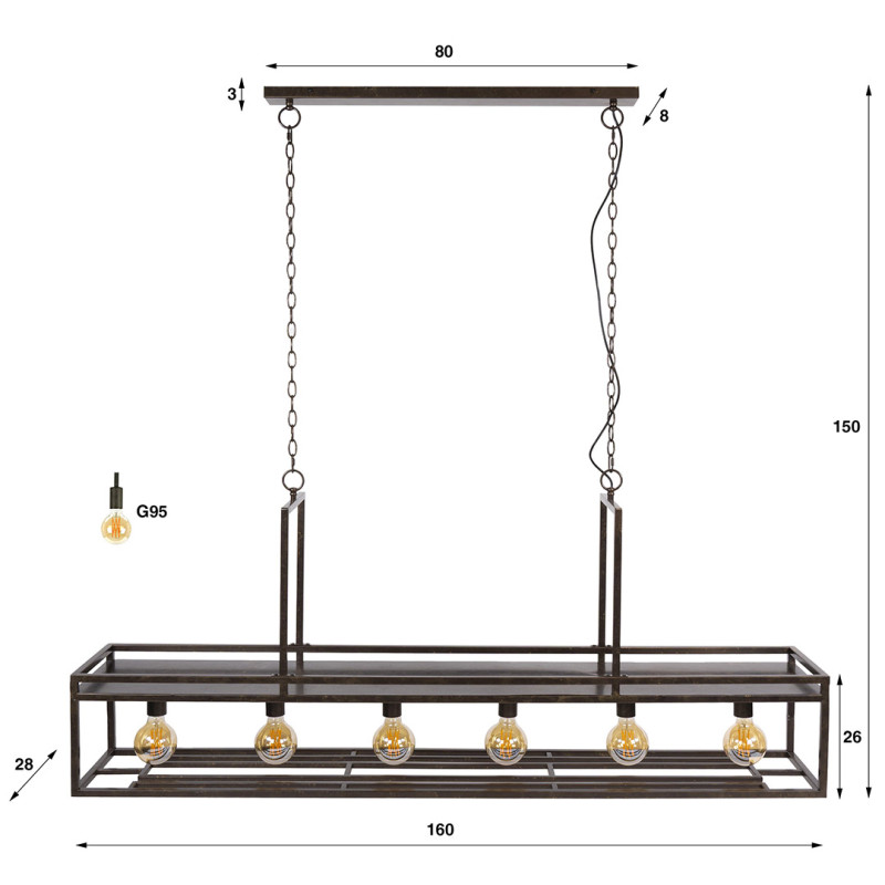| Information complémentaire | Fixation au plafond : 80x8 cm, H 3 cm - dimension de l'abat-jour : 160x28 cm,H 26 cm |