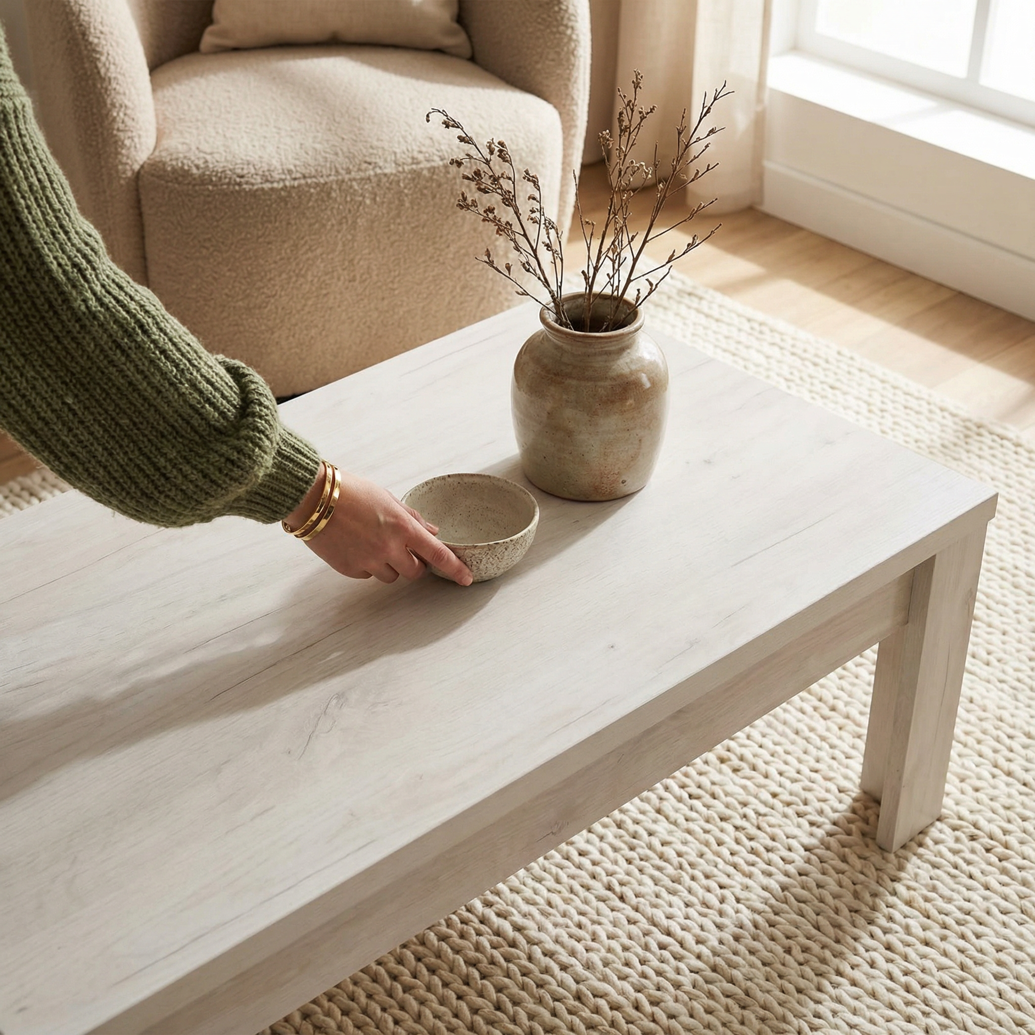 Ce qui rend cette table basse contemporaine chêne blanc spéciale, c’est son mélange parfait de robustesse et d’élégance. Avec un poids de 22 kg, elle reste facile à déplacer tout en conservant une stabilité remarquable. Son revêtement en chêne blanc crée une atmosphère apaisante, idéale pour vos moments de détente. Vous cherchez un meuble alliant style et praticité ? Cette table basse contemporaine est la solution idéale pour moderniser votre espace, tout en apportant une touche chaleureuse et naturelle.