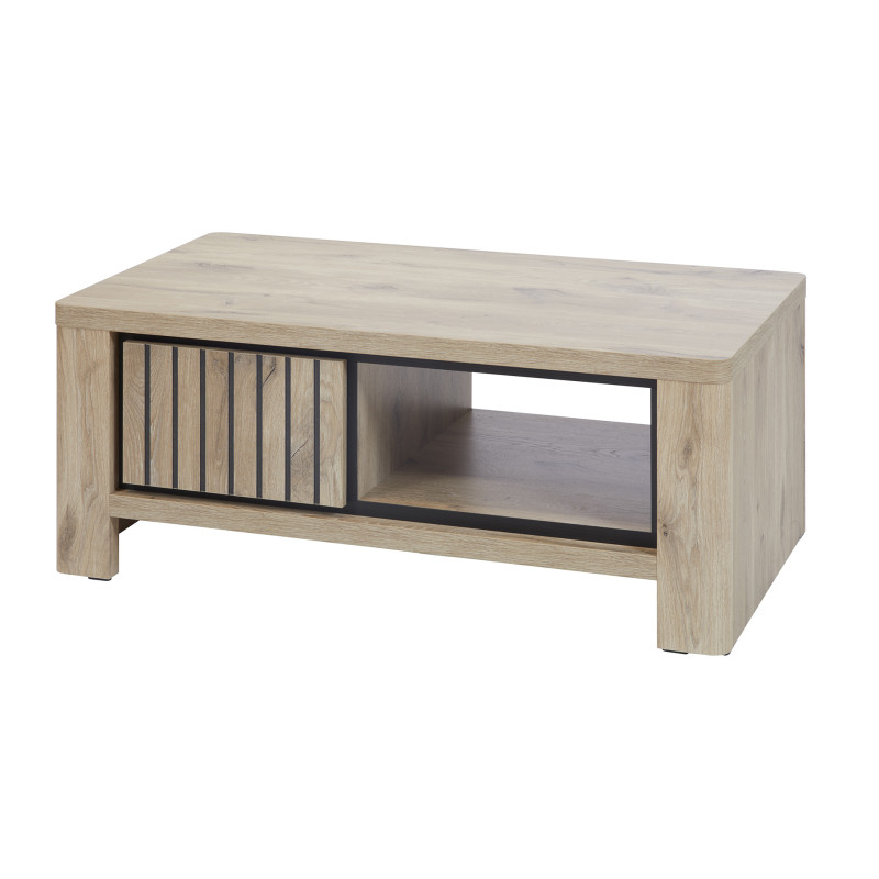 Avec ses dimensions de 115 cm de long, 65 cm de profondeur et 40 cm de hauteur, cette table offre un espace généreux pour tous vos objets du quotidien. Que vous souhaitiez poser vos livres préférés, vos boissons ou des éléments décoratifs, cette table saura répondre à tous vos besoins. De plus, son design pratique inclut un tiroir avec un système d'ouverture Soft close. Imaginez un accès facile à vos affaires, tout en préservant la tranquillité de votre foyer. Cette table est véritablement la pièce maîtresse qui allie fonctionnalité et élégance dans votre espace de vie.