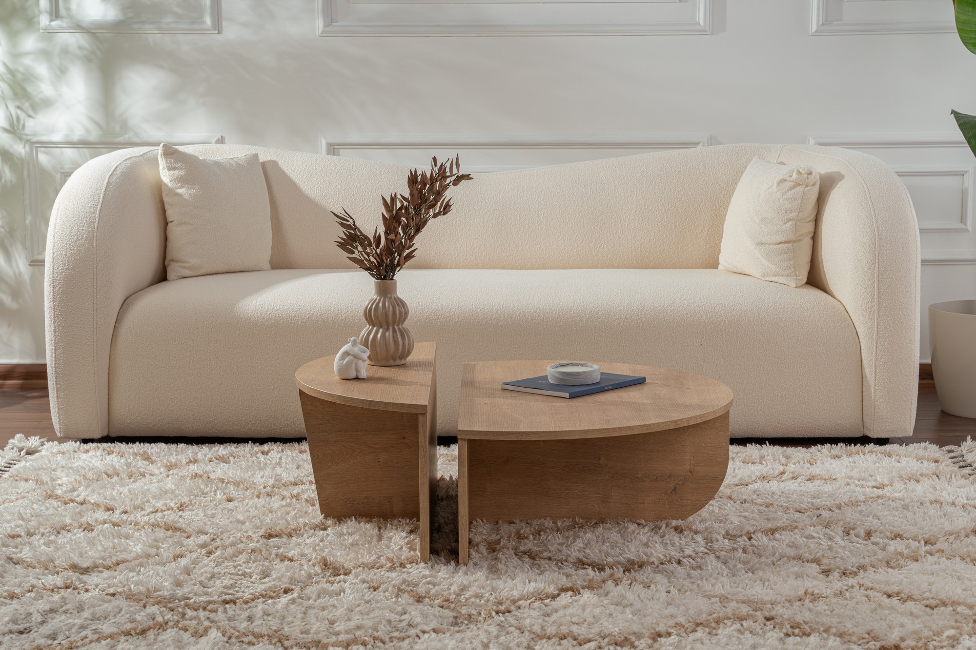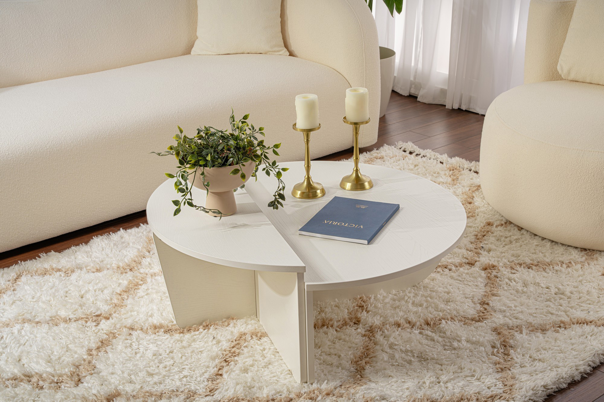 L'aspect pratique de cette table basse moderne ne sacrifie en rien son esthétisme contemporain. Les formes rondes apportent une touche de douceur visuelle qui contraste agréablement avec les lignes géométriques de l'ensemble, créant ainsi un équilibre parfait entre modernité et convivialité. L'entretien de ces tables s'avère particulièrement simple : un chiffon doux et humide suffit pour préserver leur éclat d'origine et maintenir leur surface impeccable au fil des années. Cette facilité d'entretien constitue un atout majeur pour un usage quotidien intensif.
