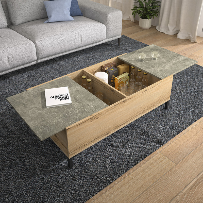 Derrière son minimalisme, la table de salon Joker renferme sous ses deux plateaux coulissants, un espace de rangement appréciable. Ses deux grands coffres sont idéaux pour ranger soigneusement vos objets du quotidien : magazines, livres, télécommandes ou bien encore jeux de société. Elle pourra également servir comme bar et ainsi déposer vos bouteilles, gâteaux apéro, verres...