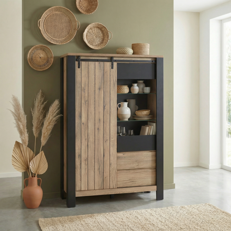 | Vaisselier/argentier industriel chêne/noir Simeo | | Longueur: 118 cm Hauteur: 180 cm Profondeur: 45 cm | En stock 3 à 4 semaines | 649 € 99 | ||