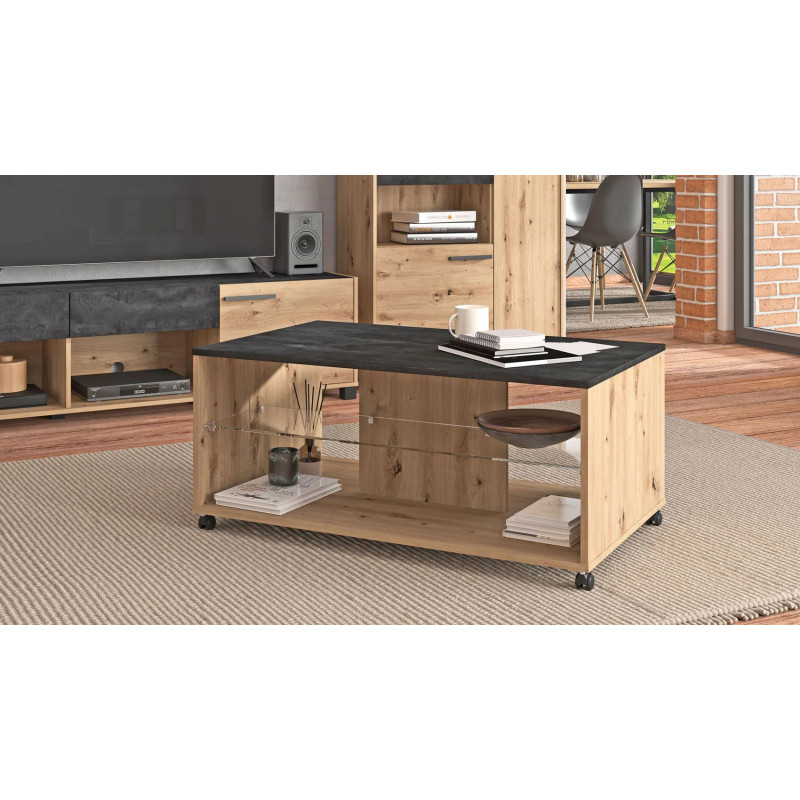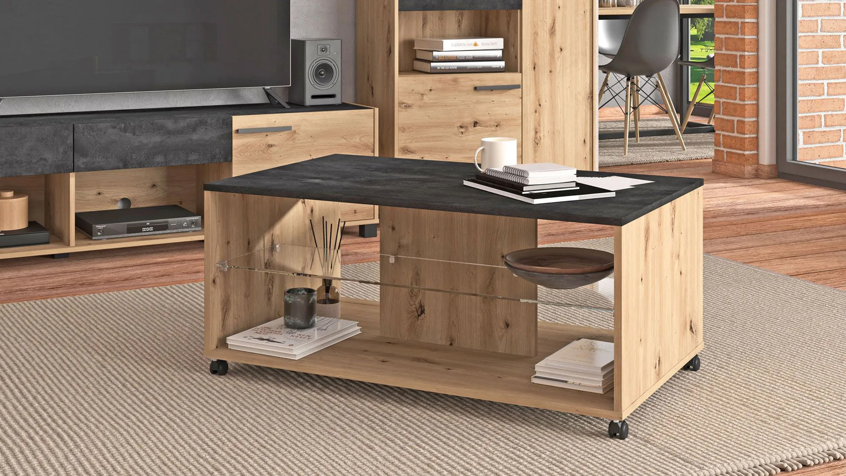 Table basse industrielle H 41 cm en bois de manguier massif naturel...