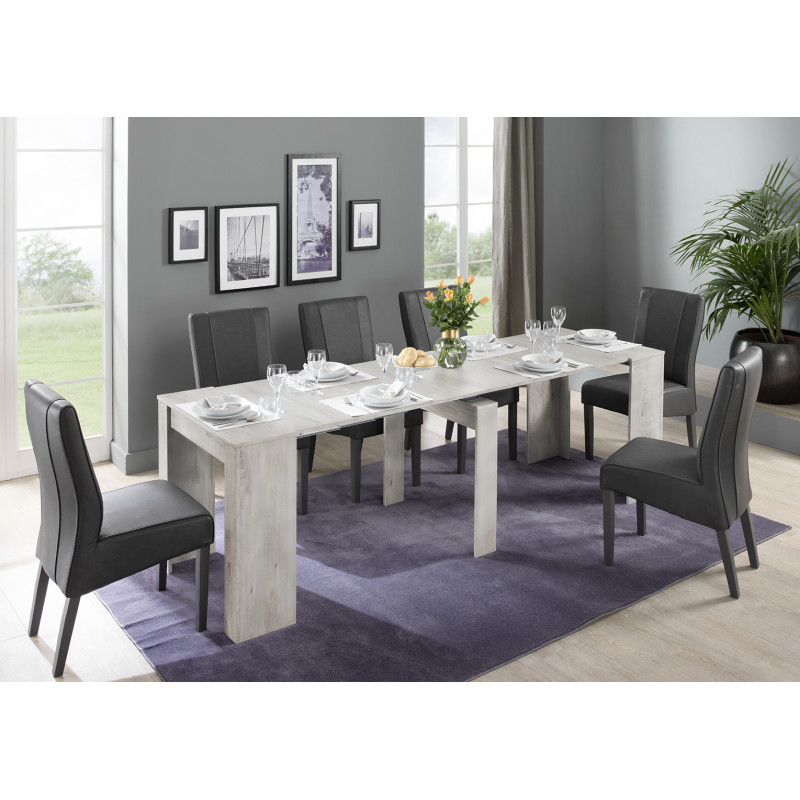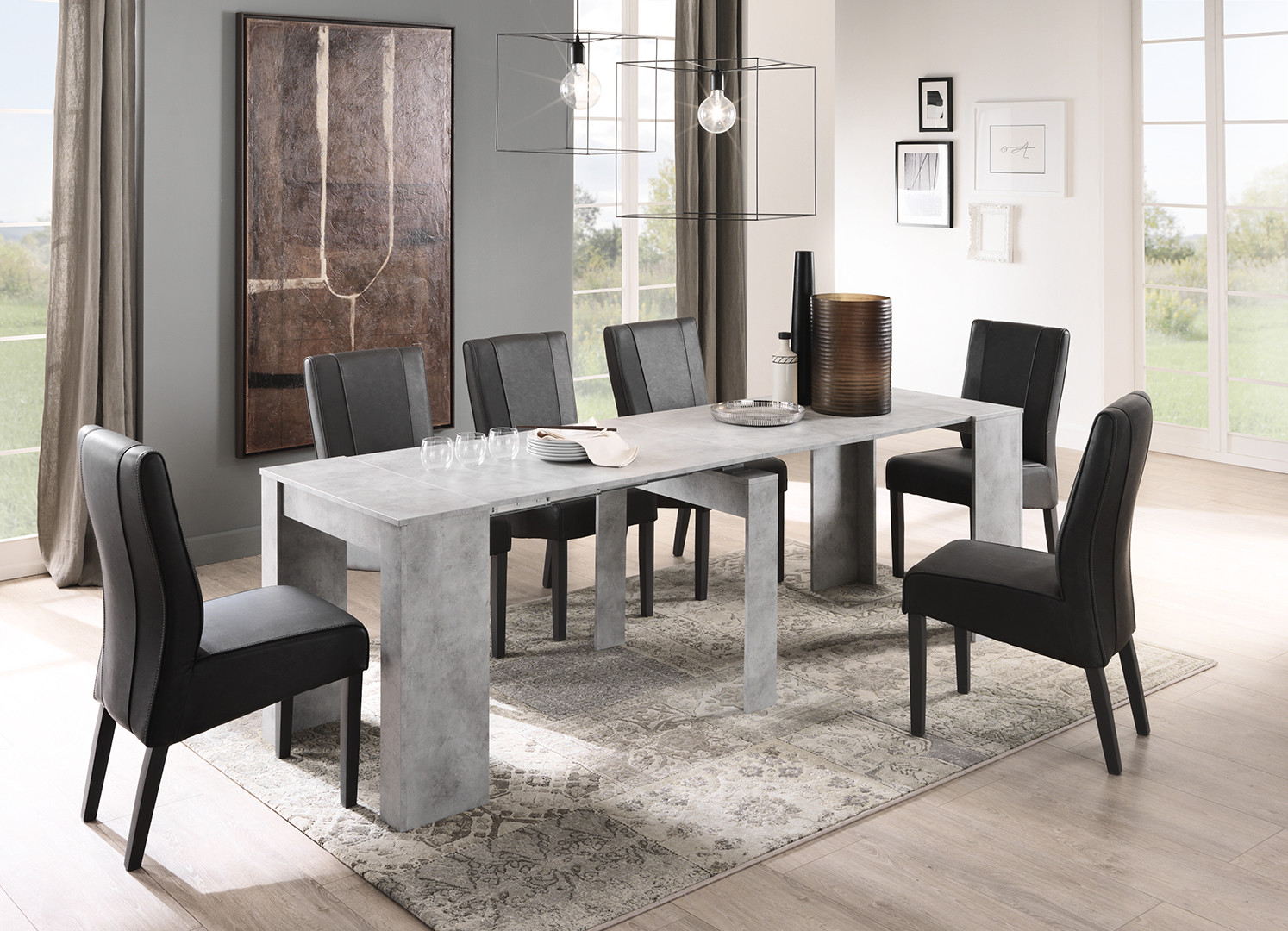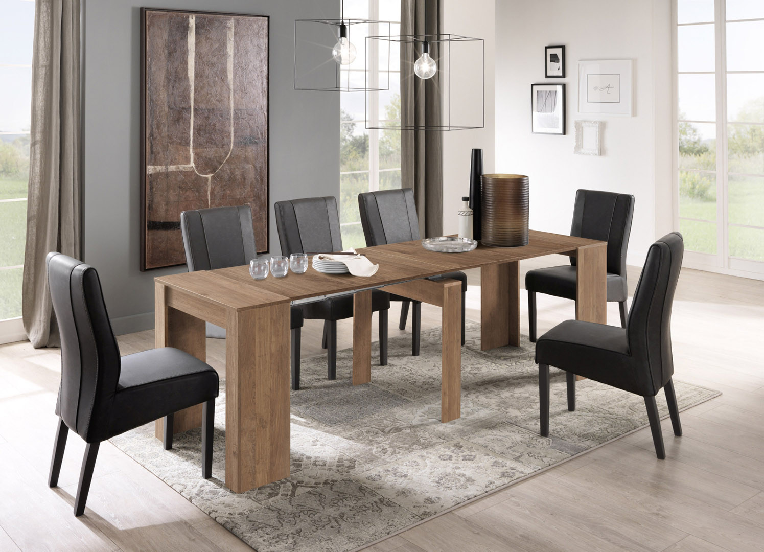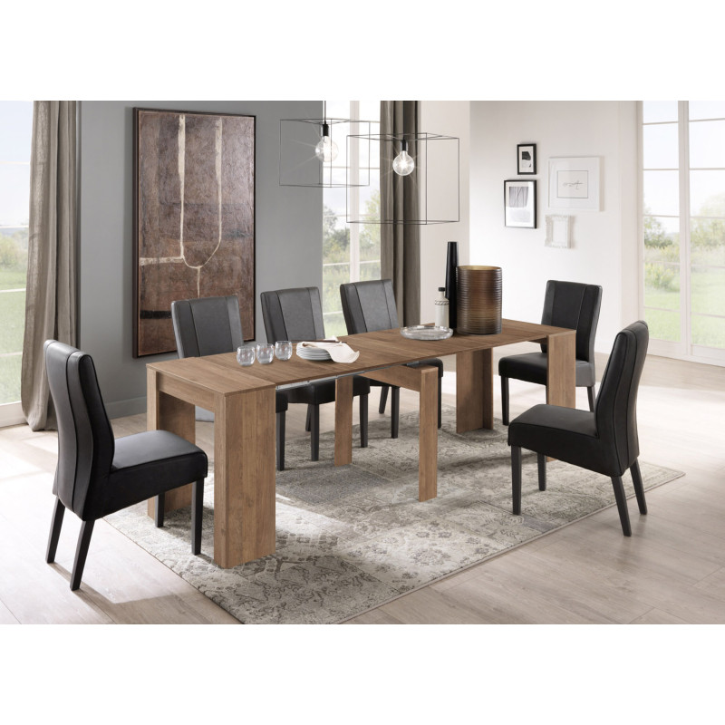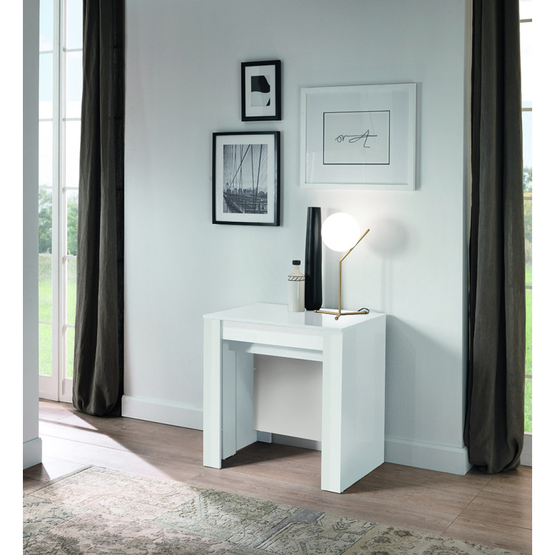 Pratique et astucieuse, cette table de salle à manger contemporaine extensible vous offre différents usages. Grâce à ses 4 allonges, vous pouvez facilement et rapidement transformer votre console en table. Vous pouvez ainsi l'utiliser à votre guise, comme table ou comme bureau, selon vos besoins. Son système de repli, simple et malin, vous permet ensuite de ranger facilement les allonges sous la console, dans l'emplacement prévu à cet effet. C'est donc un meuble deux en un qui vous est proposé pour correspondre à toutes vos aspirations.