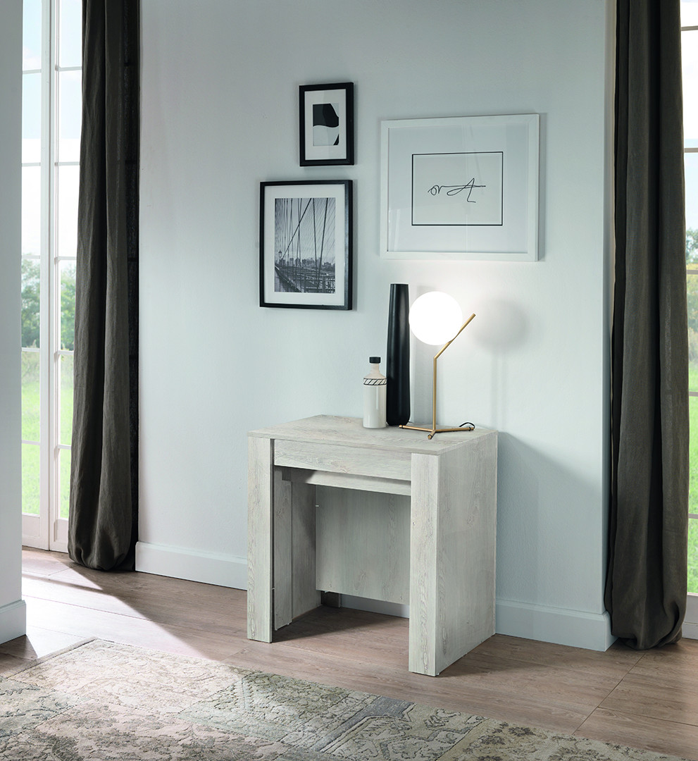 Cette table console extensible est à la fois pratique et élégante. Les panneaux de particules laminés de haute qualité qui la composent vous permettent d'en faire un usage quotidien, tout en lui donnant un aspect raffiné. Elle prend peu de place avec sa forme rectangulaire et ses dimensions 78 X 78 cm. Cette table console peut donc s'intégrer aisément à votre salle à manger afin d'apporter une touche déco tendance. Pour répondre à toutes vos envies, cette table console extensible contemporaine Eleonore est disponible en 4 coloris : blanc laqué, pin blanc, béton ou anthracite.