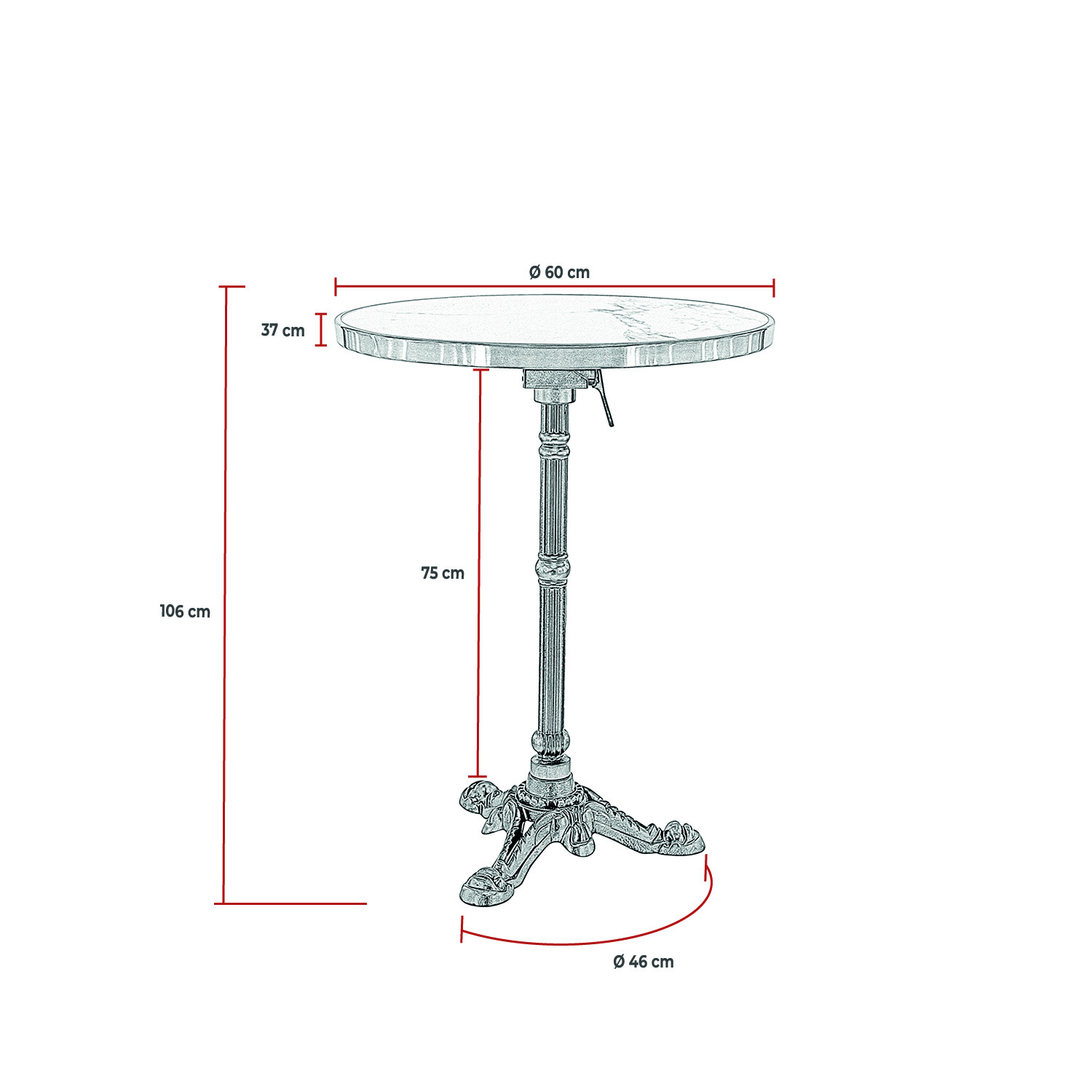 | Information complémentaire | Dimensions de la table pliée : 106x37 cm - Diamètre de la base : 46 cm |