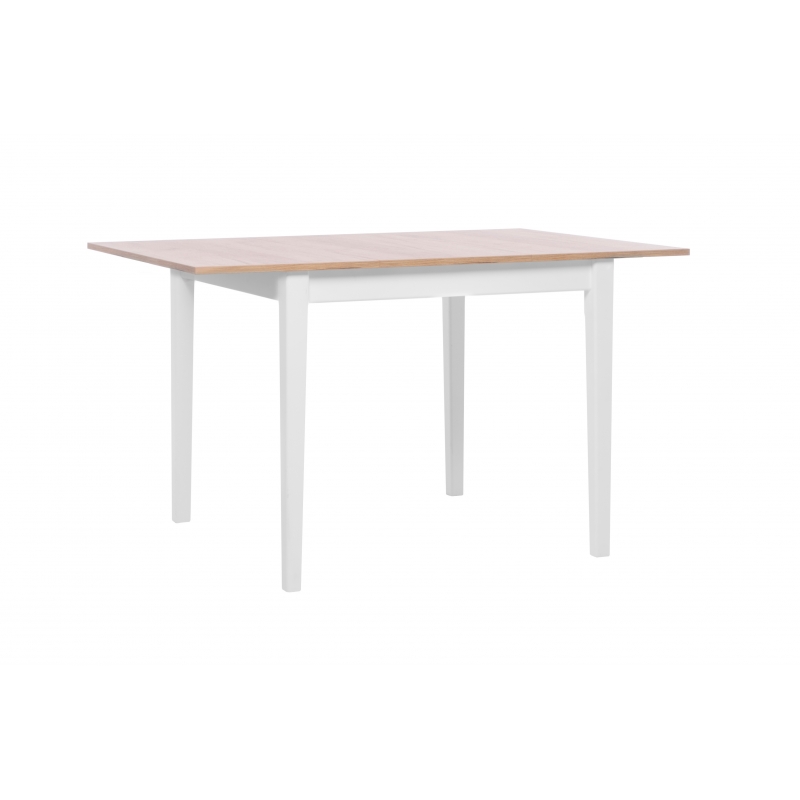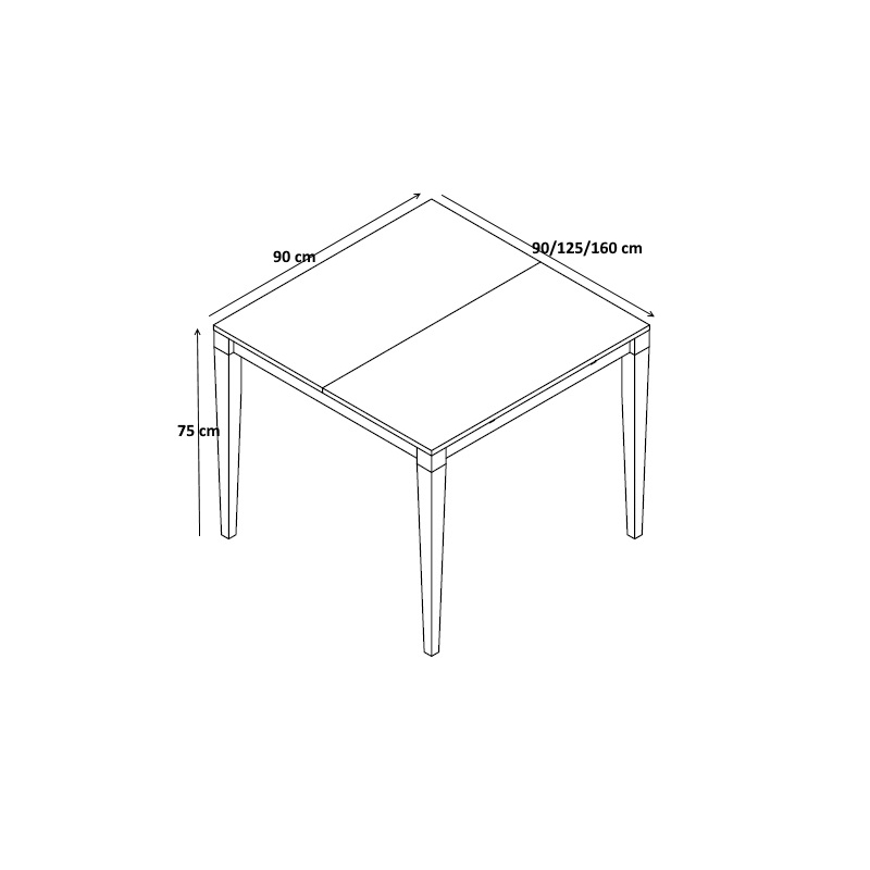 Peu encombrante et pratique, la table de cuisine contemporaine Diego pourra facilement se transformer en table de salle à manger et atteindre 160 cm grâce à ses deux allonges de 35 cm à placer en bout de table. Sa structure est fabriquée en panneaux de particules mélaminés de première qualité. Les pieds sont en bois massif blanc. Les allonges pourront être rangées sous le plateau de la table et ainsi éviter les soucis de stockage.