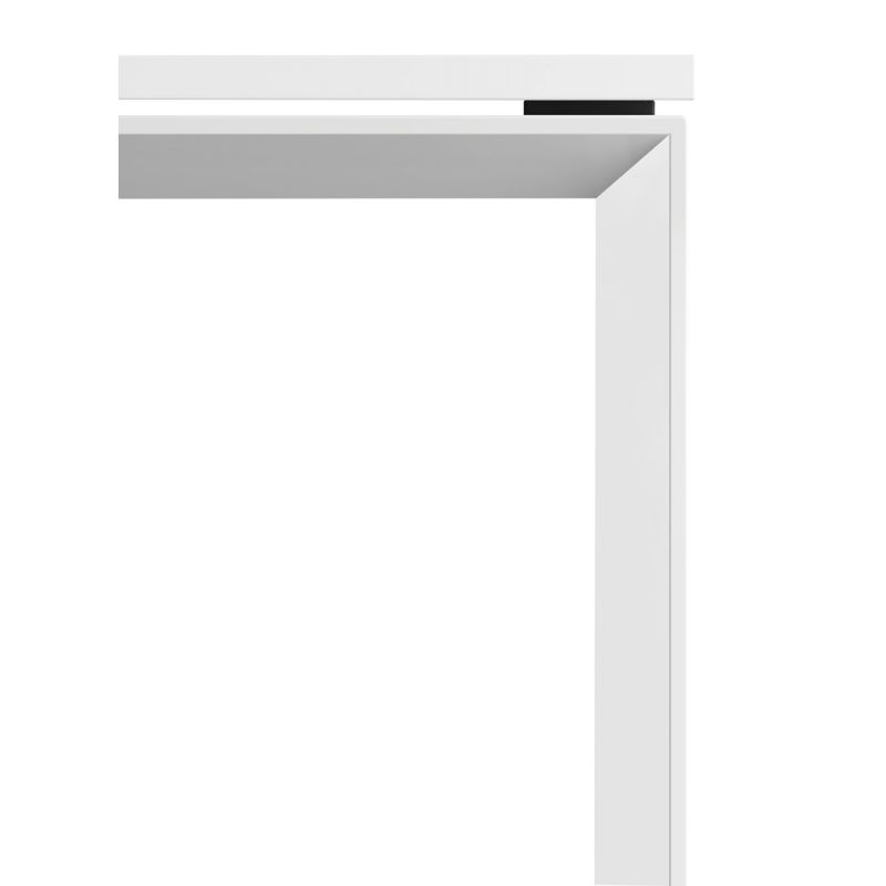 Le piétement de forme triangulaire est également en acier, avec des tubes formés à froid de 60x60 mm et une épaisseur de 1,5 mm. Il est disponible en finition époxy argent, blanc, graphite ou noir, et est équipé d'embouts en plastique ABS pour protéger le sol et garantir une meilleure stabilité. L'entretien de la table est simple, il vous suffit d'utiliser un chiffon doux et humide pour la nettoyer régulièrement.