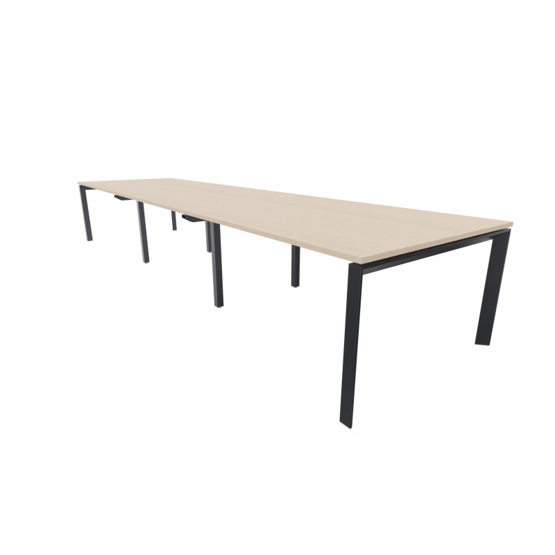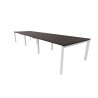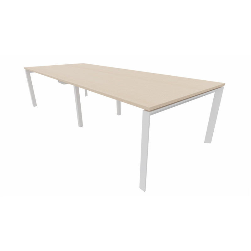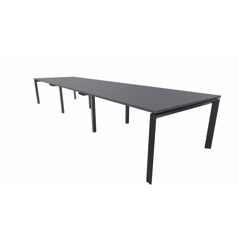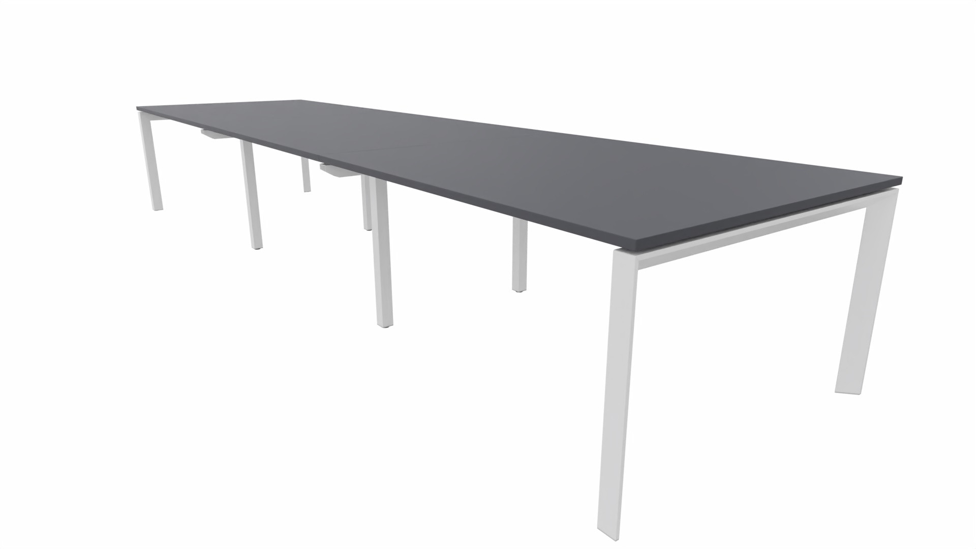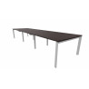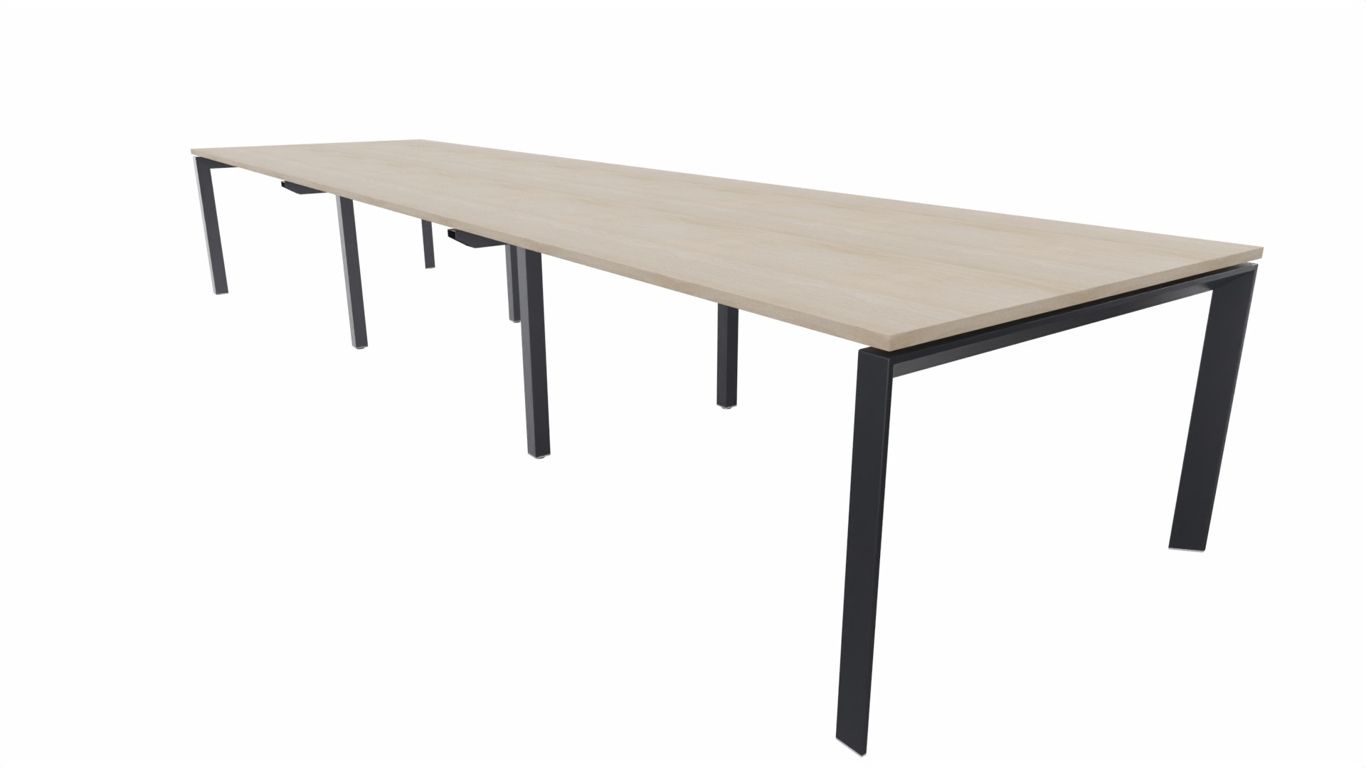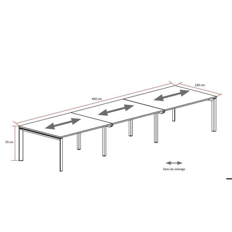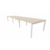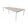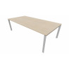 Le plateau de la table est réalisé en panneau de particules mélaminés de 25 mm d'épaisseur, avec des chants ABS de 2 mm en PVC sur tout le périmètre, assurant ainsi une durabilité maximale. La structure de la table est constituée de tubes en acier rectangulaire de 50x30x2 mm, finition époxy argent, offrant une solidité et une stabilité optimales.