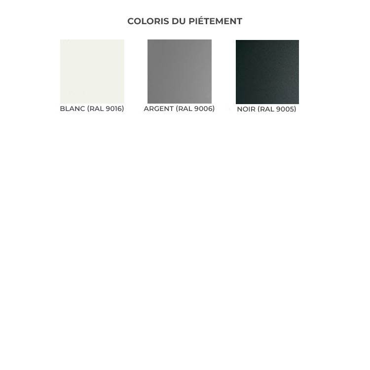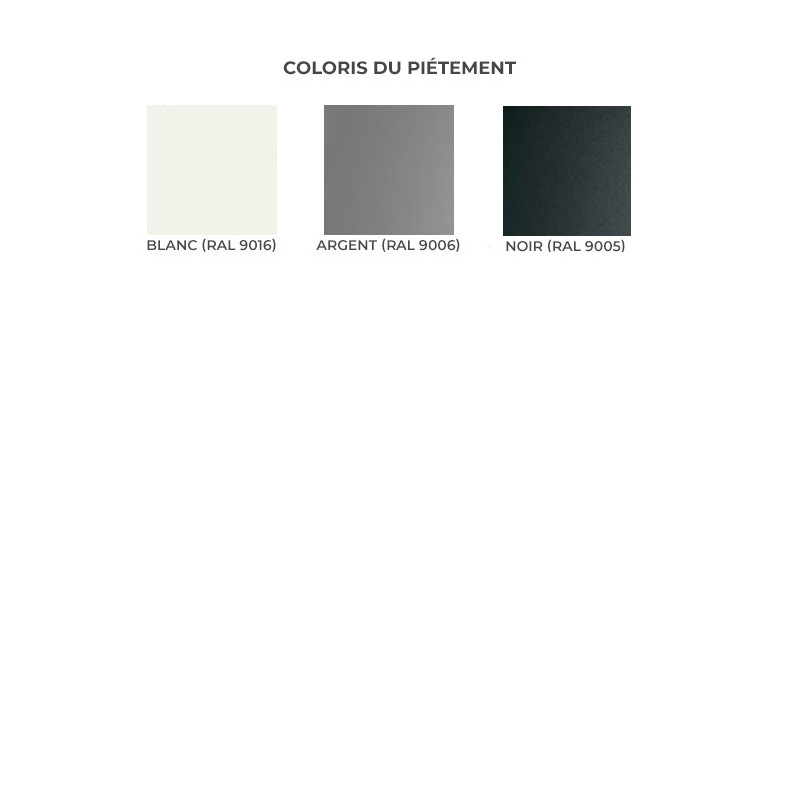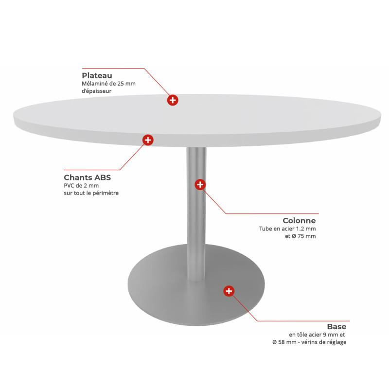 | Piétement | Base en tôle acier 9 mm Ø 58 cm - vérins de réglage - colonne en tube acier 1,2 mm Ø 7.5 cm |