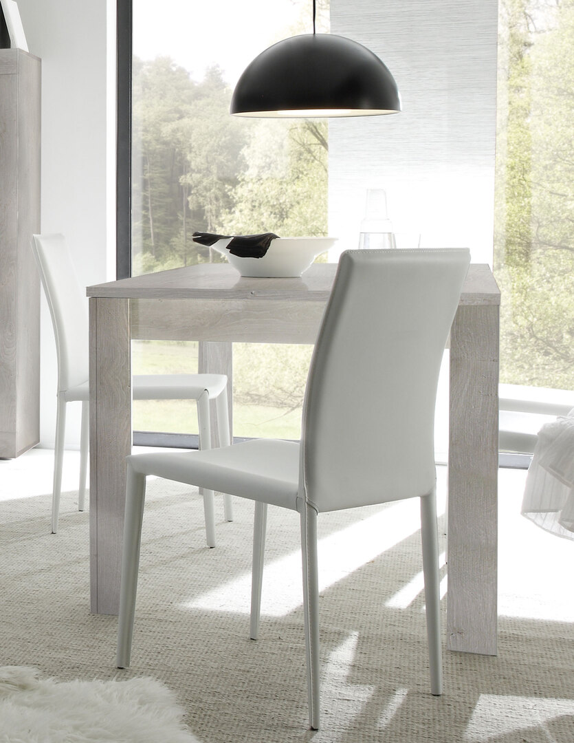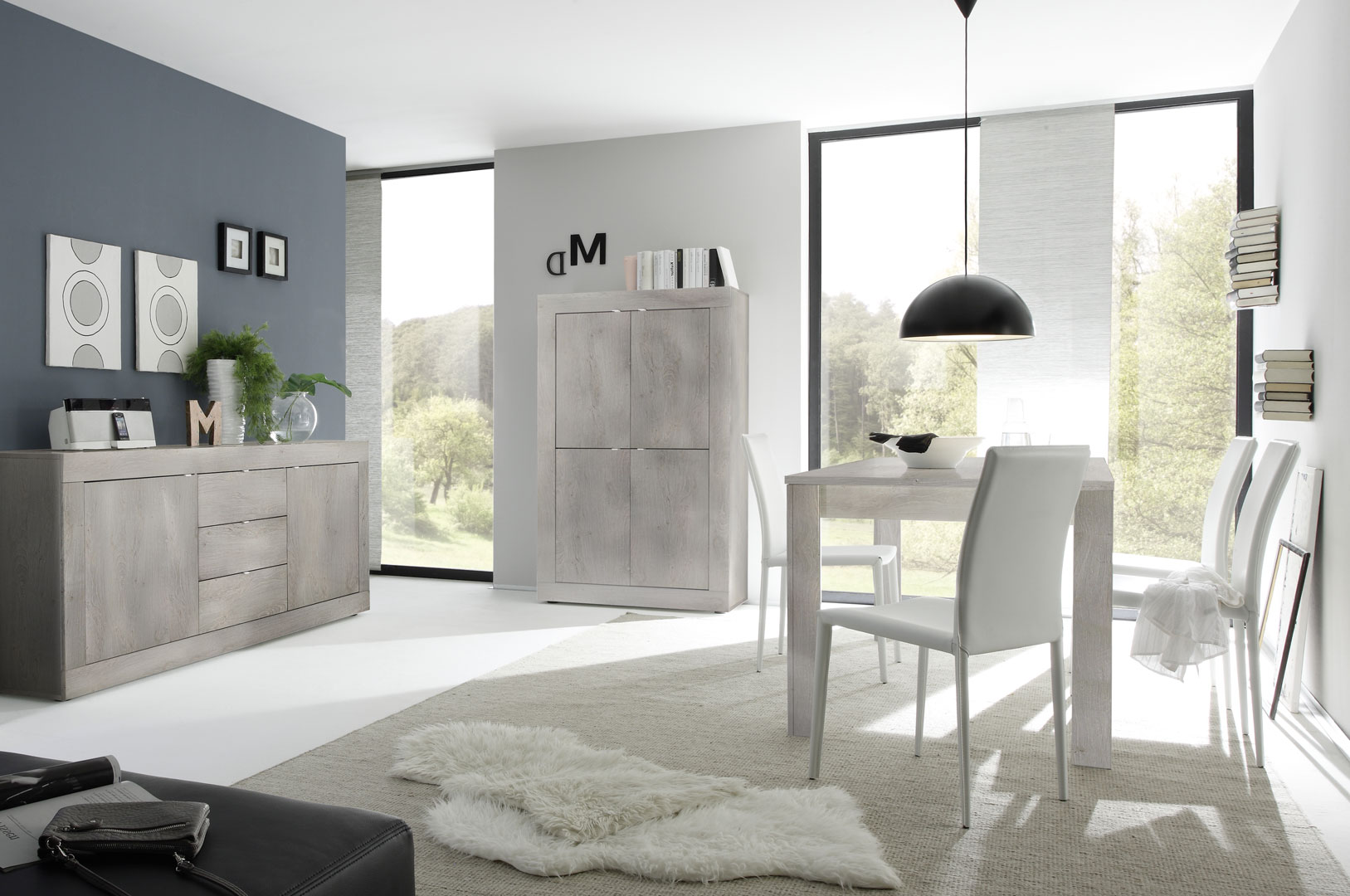 Le bois constitue la meilleure matière pour une salle à manger. Même avec son apparence au style contemporain, elle convient pour toutes les ambiances. Le bois apportera de la chaleur et de l'authenticité à votre pièce. Grâce à sa couleur blanche, vous n'aurez pas de mal à l'adapter aux nuances de votre salle à manger contemporain. Vous pourrez jouer avec des accessoires de couleur afin d'offrir un aspect harmonieux à votre espace. Dans la même gamme Albina, vous retrouverez plusieurs autres meubles vendus pour le rangement qui permettront de conserver la même unité.