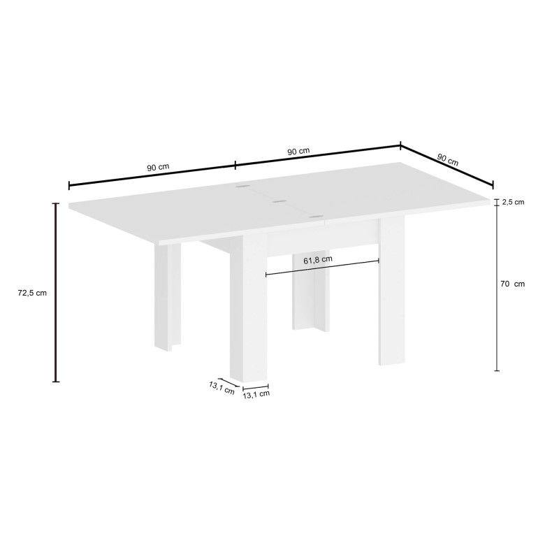 L'un des atouts majeurs de cette table à manger extensible réside dans son ingénieux mécanisme d'extension pliable, doté de solides charnières métalliques. Ce système permet de passer en quelques secondes d'une configuration de 4 places à une table pouvant accueillir jusqu'à 8 personnes, sans effort ni complexité. La hauteur standard de 75 cm et la profondeur de 90 cm assurent un confort optimal pour tous vos convives, quelle que soit la configuration choisie. Pratique et intuitive, cette table s'adapte à chaque occasion avec une simplicité déconcertante.