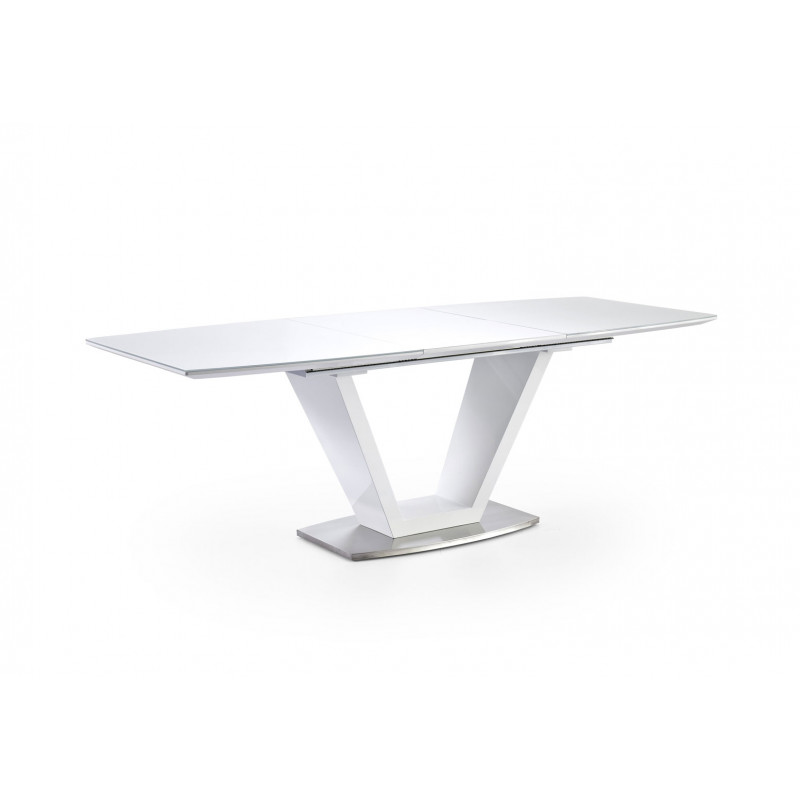 | Structure | Plateau en MDF ép. 18 mm recouvert d'une laque blanc brillant - verre sécurit blanc brillant 5 mm - pilier en MDF laqué blanc - base en acier inox brossé (44 x 84 cm) |