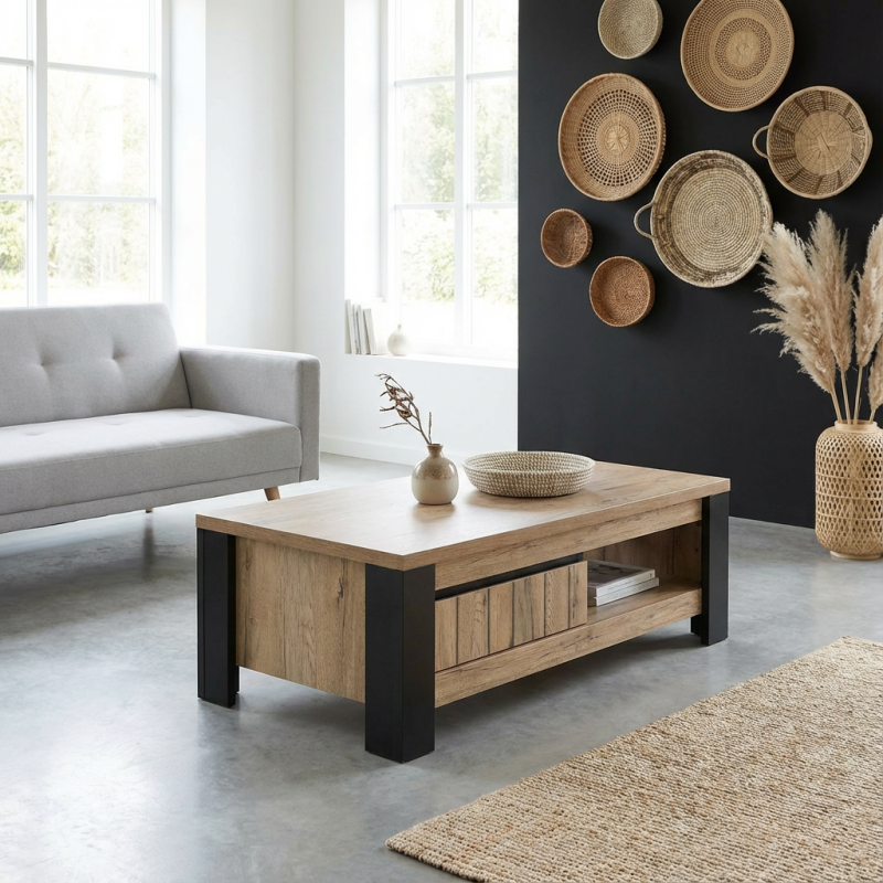 | Table basse industrielle rectangulaire chêne/noir Simeo | | Longueur: 117 cm Hauteur: 60 cm Profondeur: 39 cm | En stock 3 à 4 semaines | 270 € 75 | ||