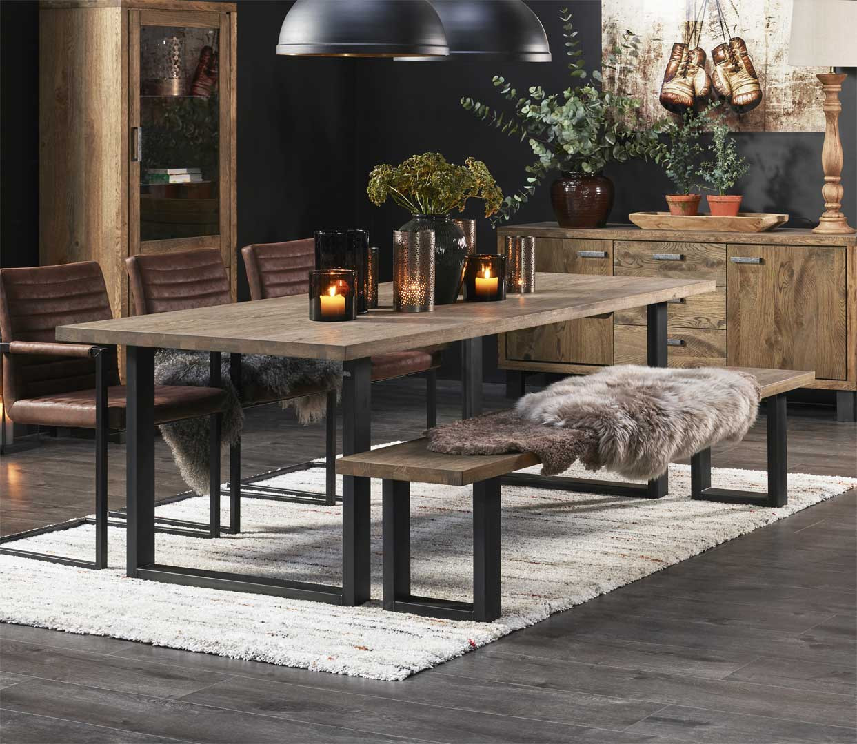Table de salle à manger industrielle en acacia massif naturel 180 cm...