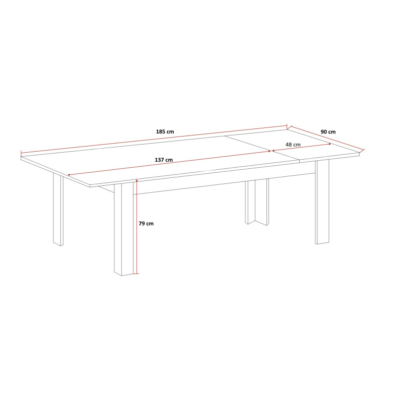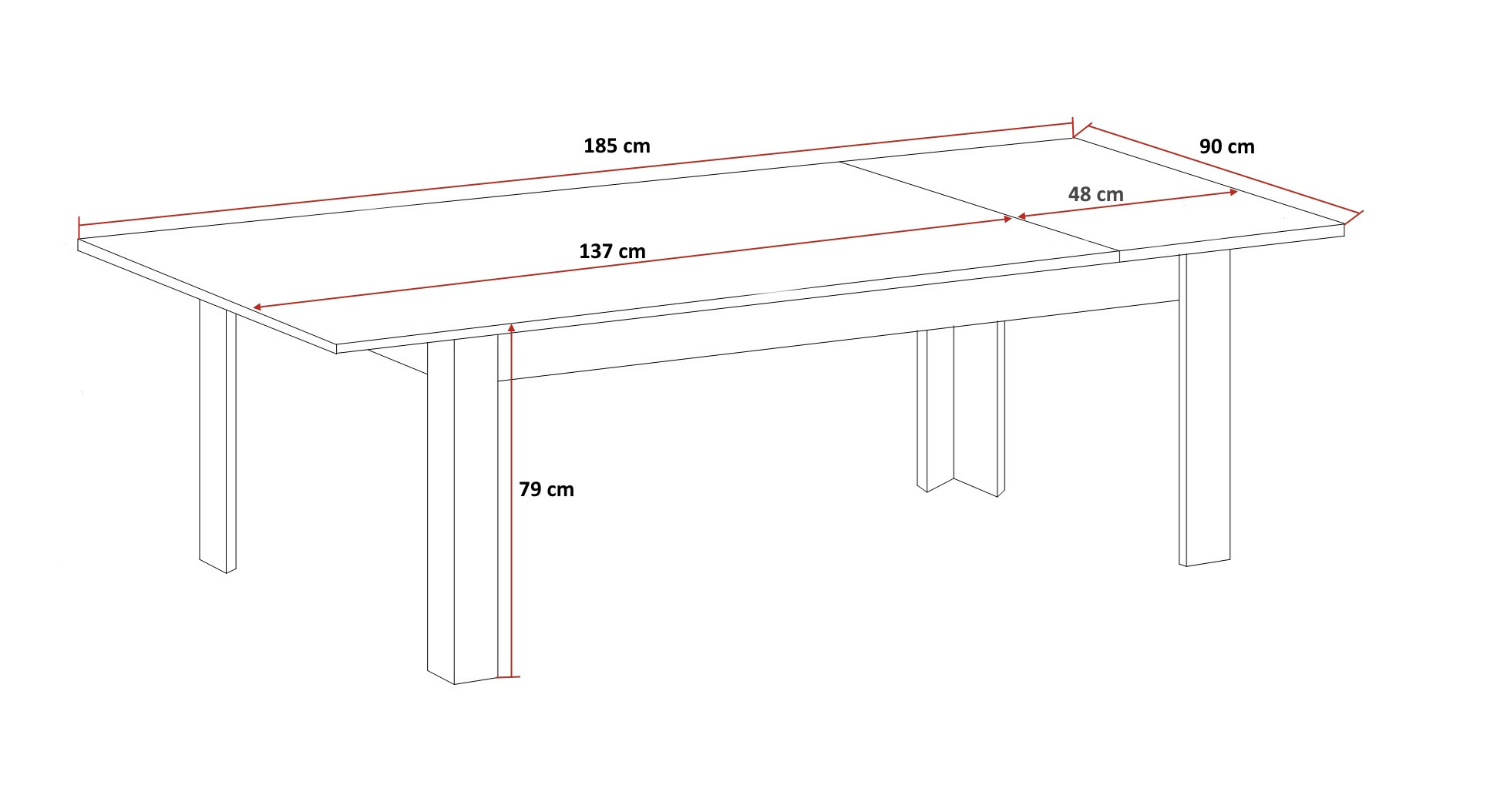 | Dimensions de la table | L 180 x H 79 x P 90 cm ou L 137-185 x H 79 x P 90 cm |