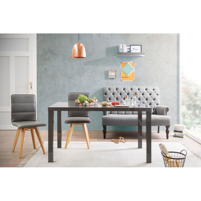 Sobre et élégante à la fois, la table design rectangulaire Clarence trouvera aussi bien sa place dans une salle à manger que dans une cuisine. Elle pourra également servir de bureau en associant le caisson de bureau Clarence vendu séparément. Sa structure est fabriquée en panneaux de particules de première qualité recouvert d'une laque grise mat ou brillant selon votre choix.