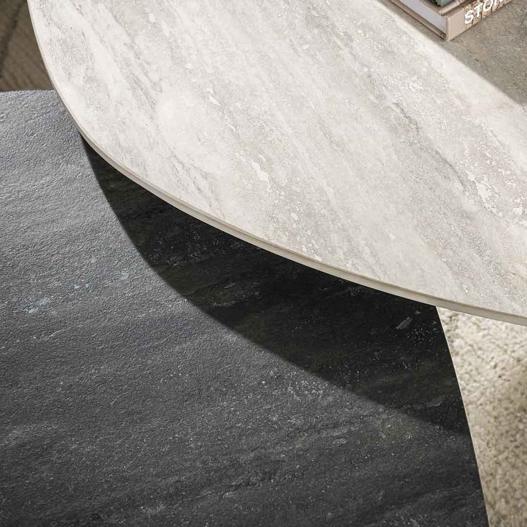 Les dimensions généreuses de ces deux tables permettent une grande modularité : l'une mesure L 67 x H 36 x P 58 cm et l'autre L 100 x H 41 x P 87 cm. Que vous les utilisiez ensemble ou séparément, elles apportent une flexibilité précieuse dans l’agencement de votre espace. La structure en acier inoxydable noir confère à cet ensemble une robustesse à toute épreuve, idéale pour un usage quotidien. Le plateau en céramique est non seulement élégant, mais aussi facile à entretenir, ce qui en fait une table basse moderne parfaitement adaptée aux intérieurs exigeants.