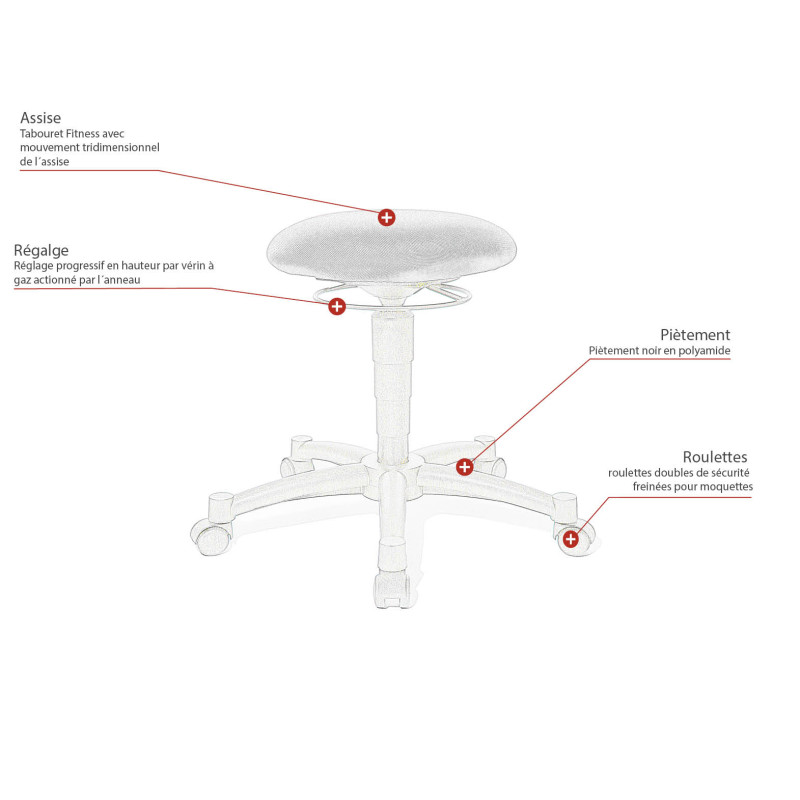 | Information complémentaire | Tabouret Fitness avec mouvement tridimensionnel de l´assise |