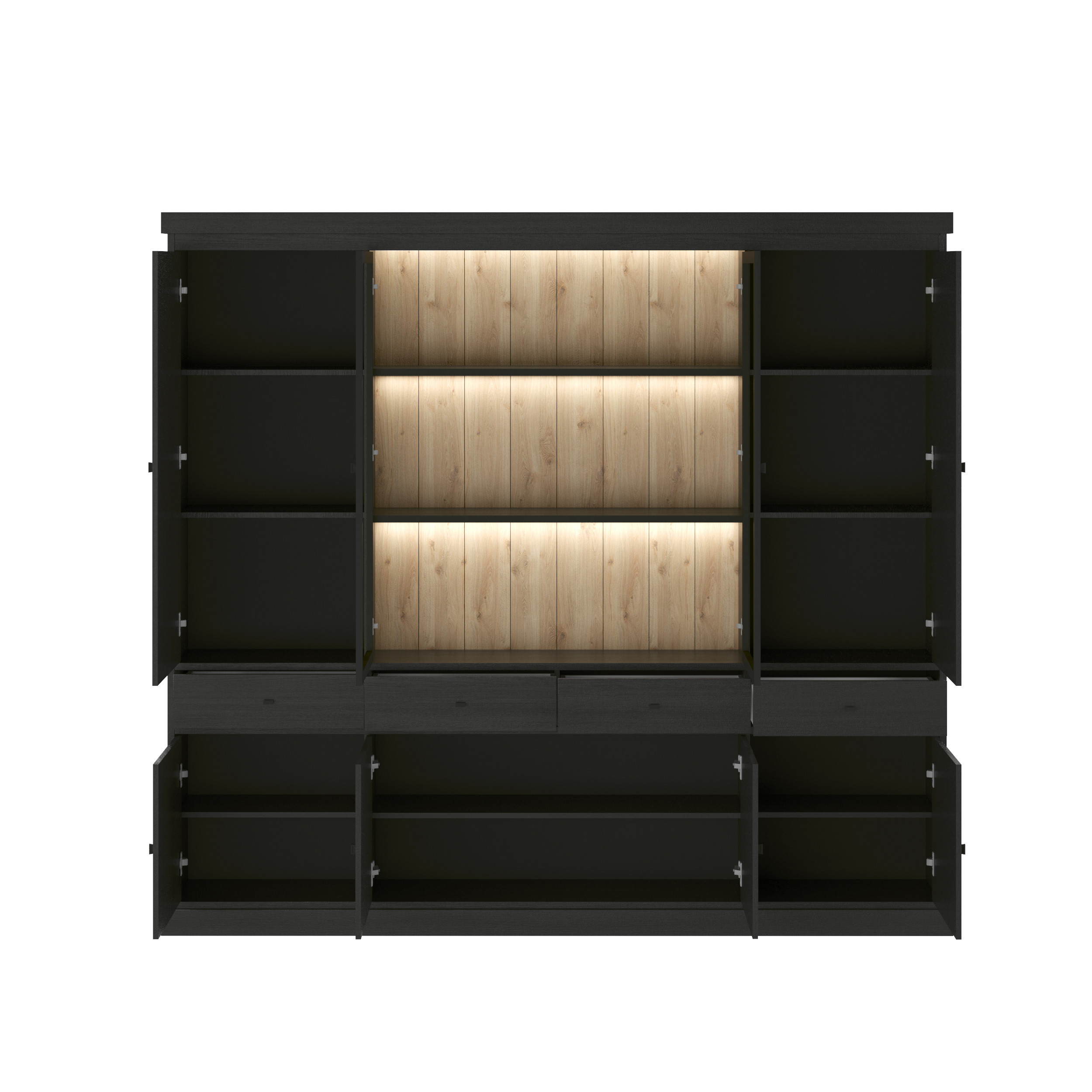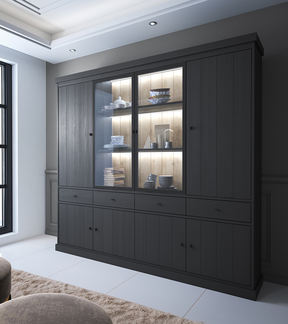 | Vitrine moderne chêne noir Valeria | | Longueur: 182 cm Hauteur: 220 cm Profondeur: 40 cm | En stock 3 à 4 semaines | 1015 € 00 | ||