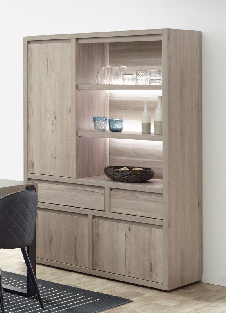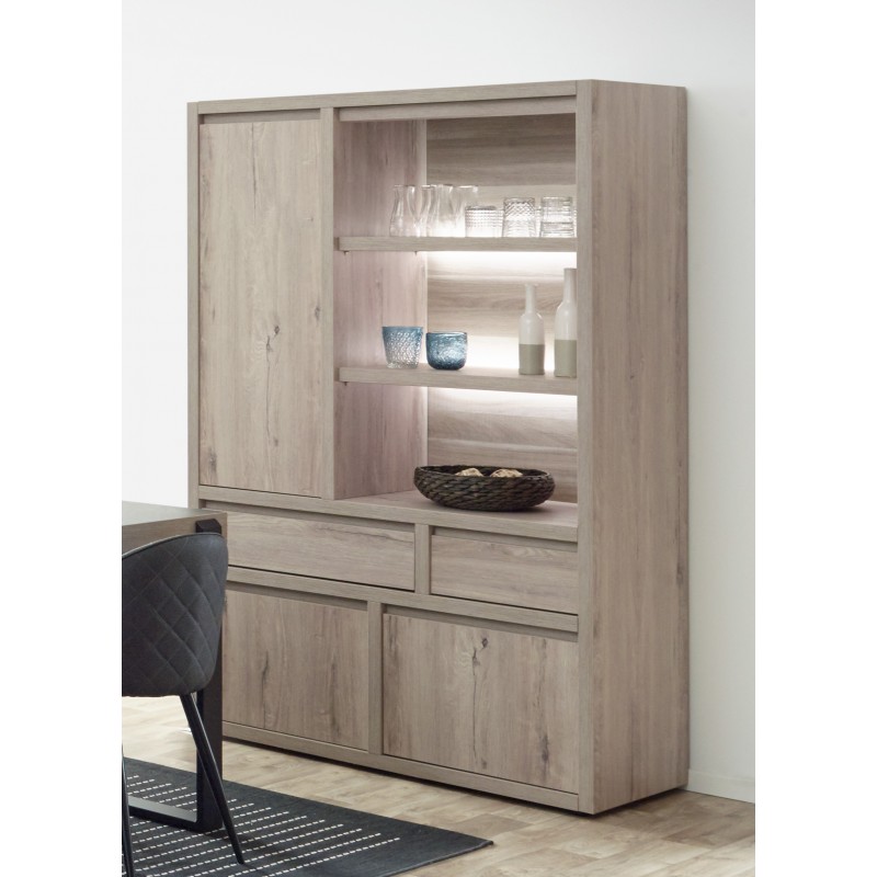 Adoptez un style épuré et chaleureux dans votre intérieur avec le vaisselier/argentier contemporain California. Sa structure est fabriquée en panneaux alvéolaires 100% mélaminés. Le panneau alveolaire a la particularité d'être hyper solide et très léger à la fois. Il se compose de trois portes comprenant deux étagères, de trois niches ouvertes avec éclairage et de deux tiroirs montés sur coulisses métalliques. Le vaisselier California est doté d'un éclairage. Pour un ensemble harmonieux, optez pour les autres meubles de la gamme California vendus séparément.
