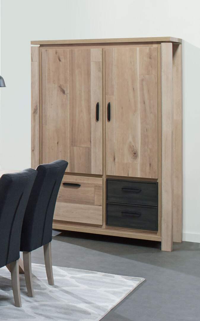 Le vaisselier/argentier contemporain Tyson vous charmera par son côté rustique et son coloris chaleureux. Sa structure est fabriquée en panneaux alvéolaires 100 % mélaminés. Le panneau alvéolaire a la particularité d'être robuste et léger à la fois. Le devant des tiroirs est en MDF de 28 mm d'épaisseur. Il se compose de deux portes comprenant trois étagères intérieures, d'une porte inférieure avec une étagère et de deux tiroirs montés sur coulisses métalliques avec système Soft Close. Les poignées sont en métal. Pour un ensemble harmonieux, optez pour les autres éléments de la gamme Tyson vendus séparément.