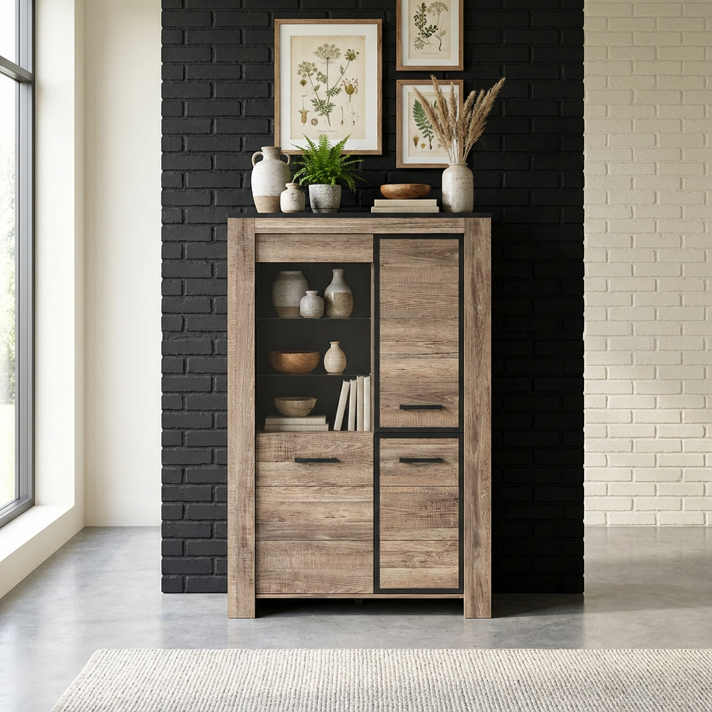 Avec un look moderne et des matériaux premium, ce meuble de salle à manger est bien plus qu’un simple espace de rangement. La combinaison subtile du chêne et du marbré noir crée une esthétique harmonieuse qui s’accorde avec tous les styles d’intérieurs. Les étagères en verre sont idéales pour exposer vos pièces les plus précieuses tout en les gardant à l’abri de la poussière grâce aux portes battantes. Ce vaisselier est le compromis parfait entre une allure contemporaine et une fonctionnalité indispensable au quotidien.