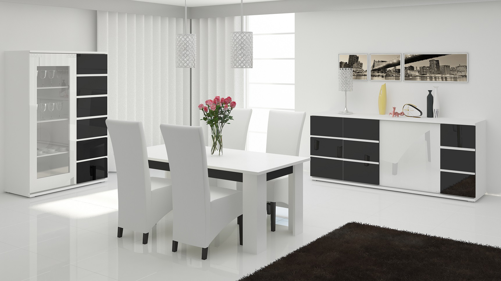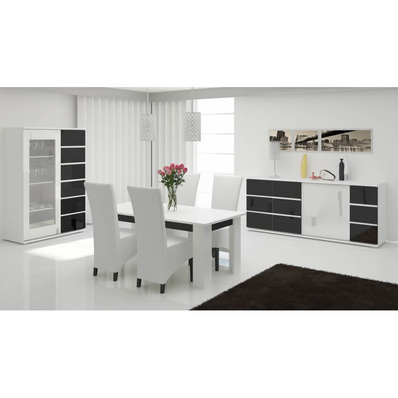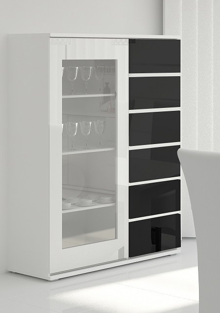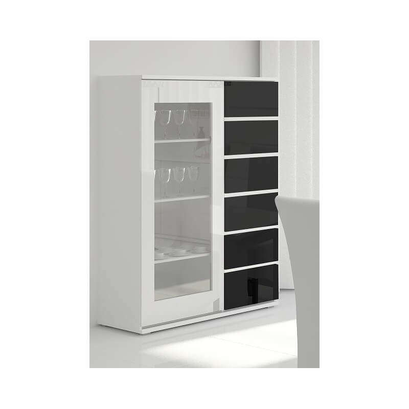 Laissez-vous charmer par les lignes sobres et la brillance de la vitrine design Cassandra. Sa structure est fabriquée en panneaux de particules mélaminés de 16 et 25 mm d'épaisseur. Les façades sont recouvertes d'une laque brillante. Elle se compose de 2 portes coulissantes comprenant chacune 3 étagères intérieures : une porte en verre trempé poli de 4 mm d'épaisseur et une porte pleine. Les portes sont montées sur coulisses en aluminium avec chariots de palier inférieur et guide supérieur réglable. Pour un ensemble harmonieux, optez pour les autres éléments de la gamme Cassandra vendus séparément.